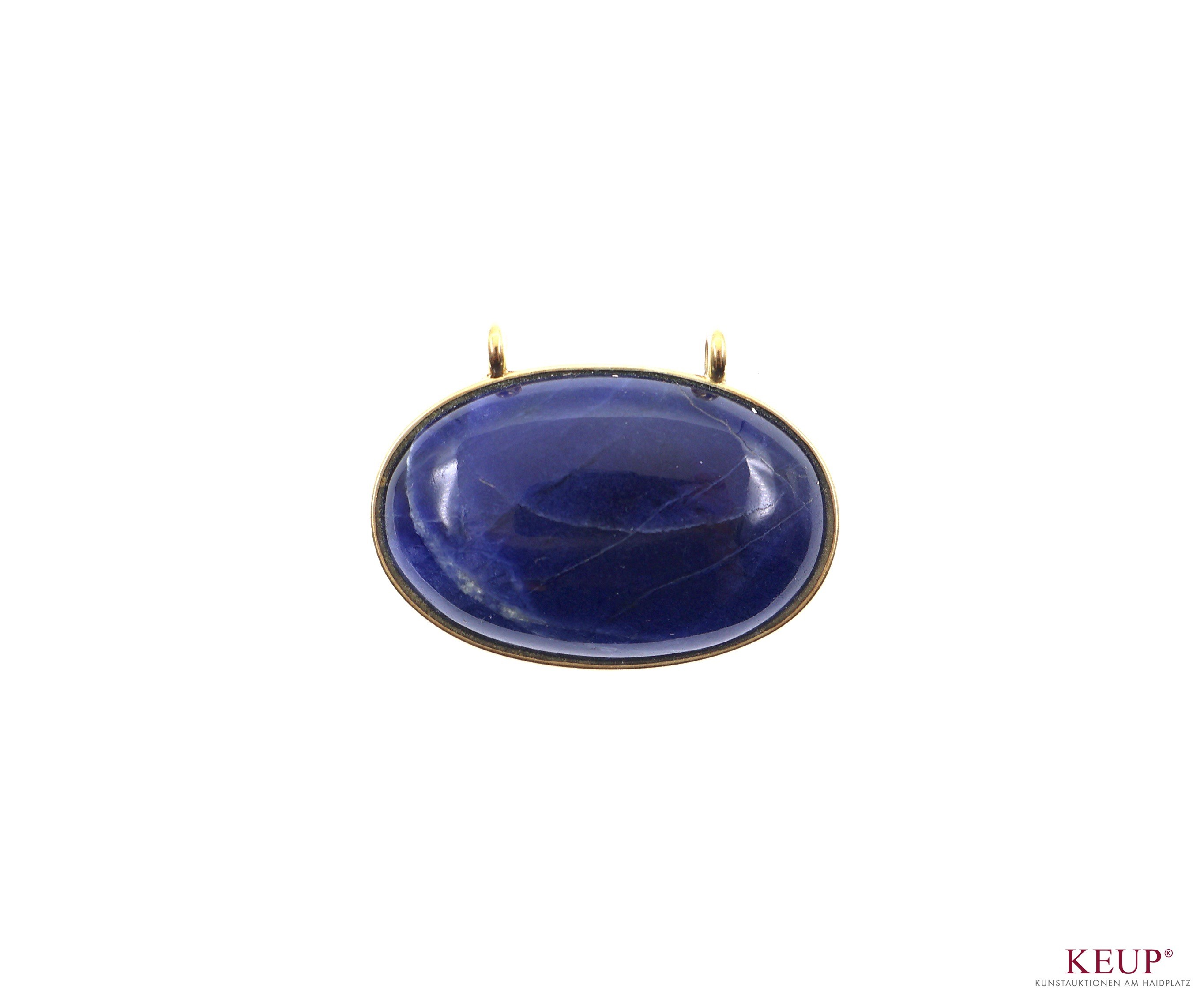 Goldener Anhänger Gelbgold gest. 585, ausgefasst mit Lapislazuli-Cabochonplatte, Maße ca. 4,5x3 cm, ca. 21,8 Gramm, Provenienz: Landkreis Regensburg
