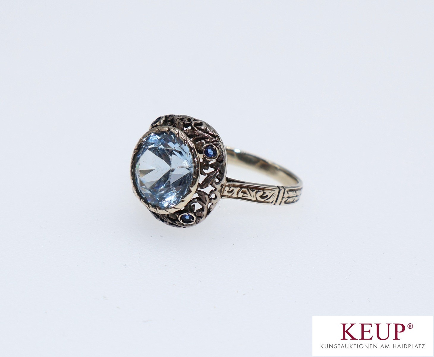 Goldener Damenring Weißgoldfassung Gold geprüft, ausgefasst mit blauem Schmuckstein, Ringgröße 53, ca.2,6 Gramm, Provenienz: Privatbesitz Oberbayern