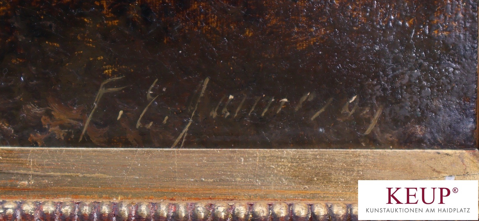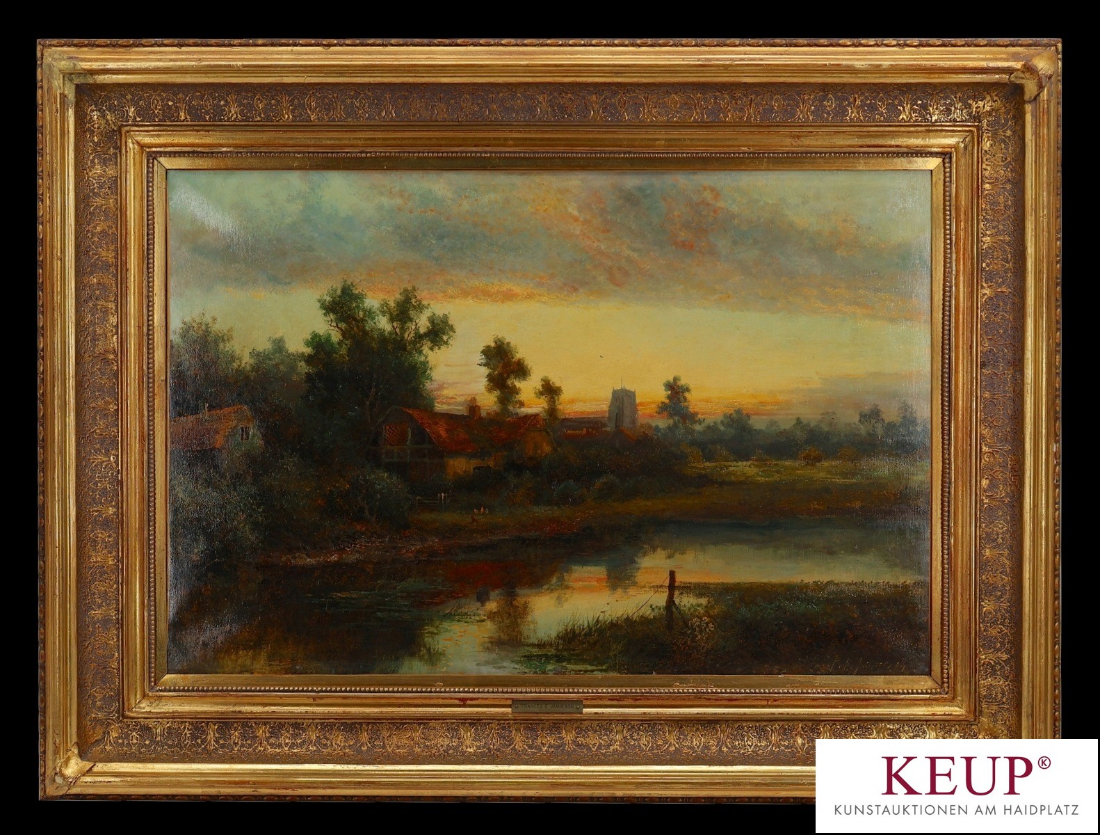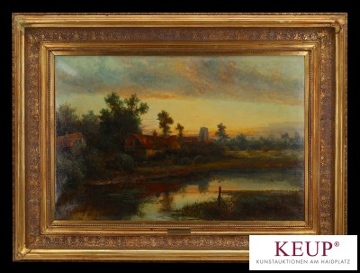 Gemälde - Francis E. JAMIESON (England 1895-1950) ''Landschaft bei Abenddämmerung'', r.u. signiert, Öl auf Leinwand (doubliert), Maße Darstellung ca.50x75 cm, Goldrahmen, Gesamtmaße 75x102 cm, Provenienz: Privatbesitz Niederbayern