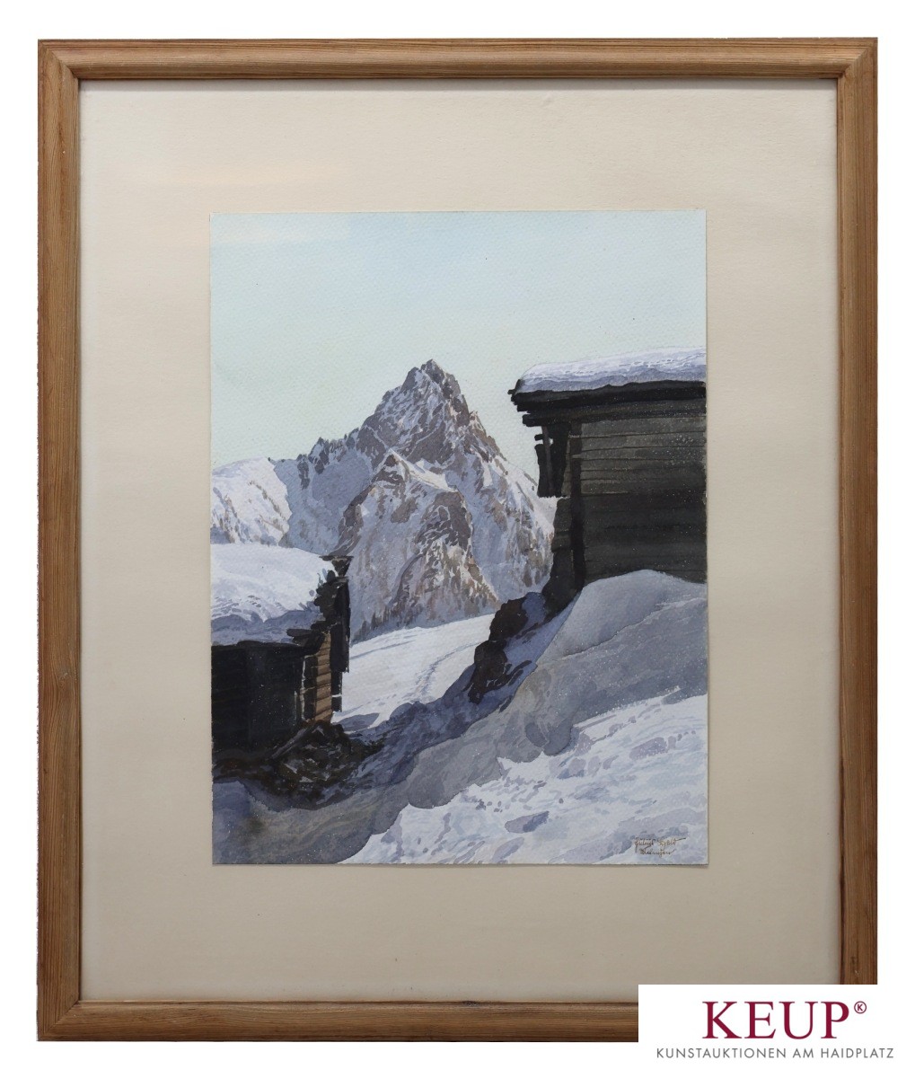Aquarell - Julius Gold (1883-1942) ''Alpine Winterlandschaft'', r.u. signiert und bezeichnet München, lasierende Farben auf Paper, Maße Darstellung ca. 39x30 cm
