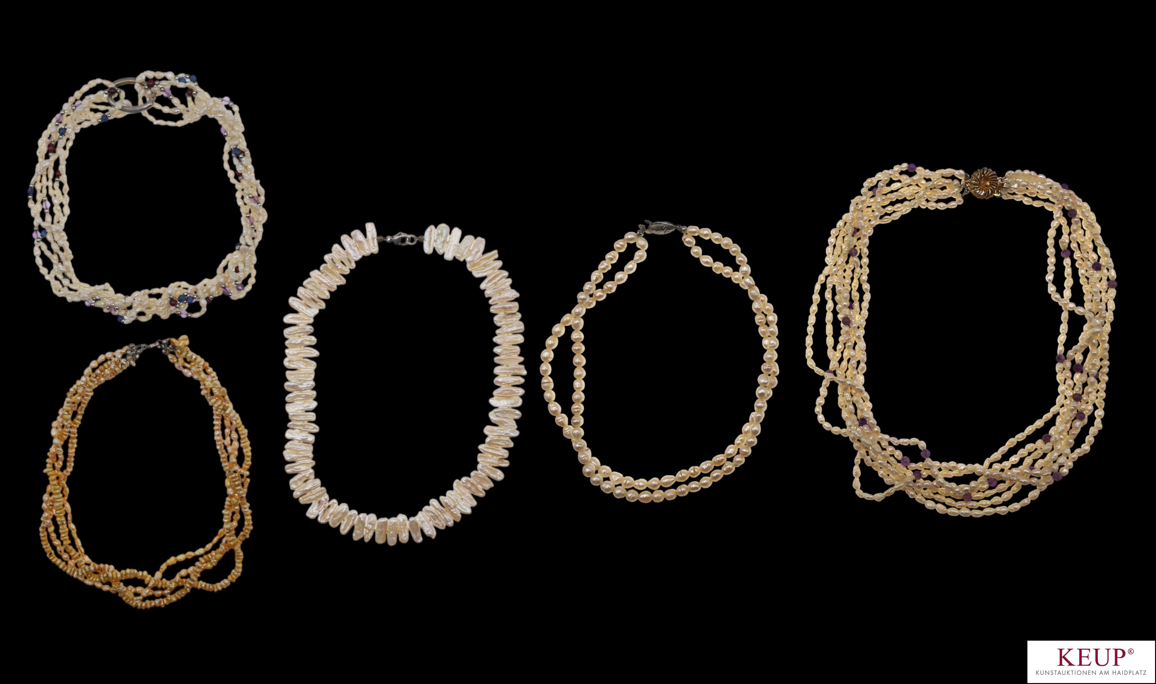 Lot Perlenketten versch. Design, versch. Längen, 5 Stück, Provenienz: Privatbesitz Chiemgau