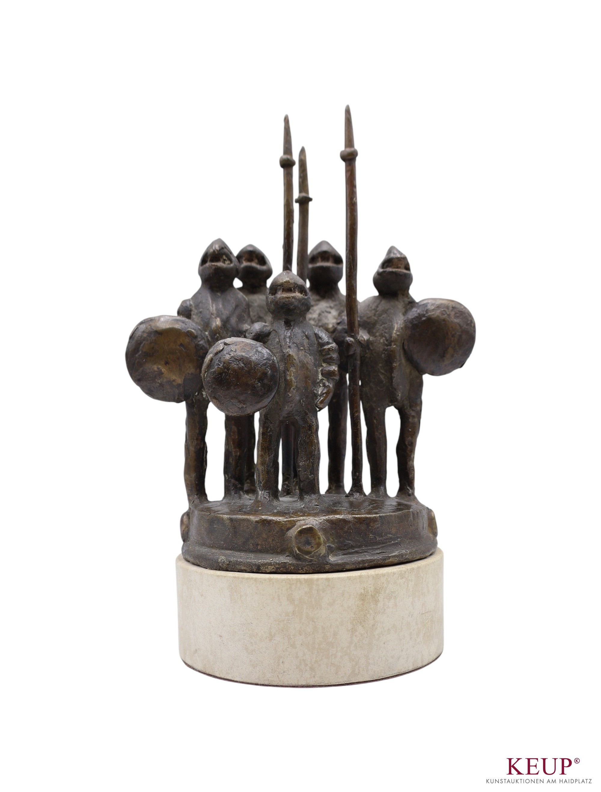 Figur - Peter Mayer attr.(1938 Schwandorf / Bayern 2009) ''Gruppe von fünf Wächterfiguren'', Bronze, unsigniert, Steinsockel, Gesamthöhe ca. 22 cm, Provenienz: Private Oberpfälzer Kunstsammlung