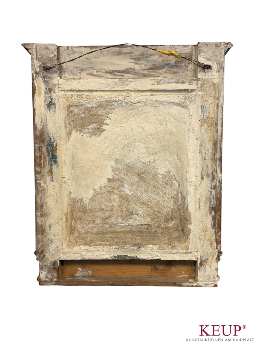 Relief - nach Renaissancevorbild Luca Della Robbia (um 1400 Florenz - 1481) ''Madonna und Kind'', evtl. Felix Nanny München um 1890, Holzrahmen mit Säulen und Maskaronen, Beschädigung am Relief restauriert (siehe Foto Rückseite), Gesamtmaße ca. 74x61x13 cm