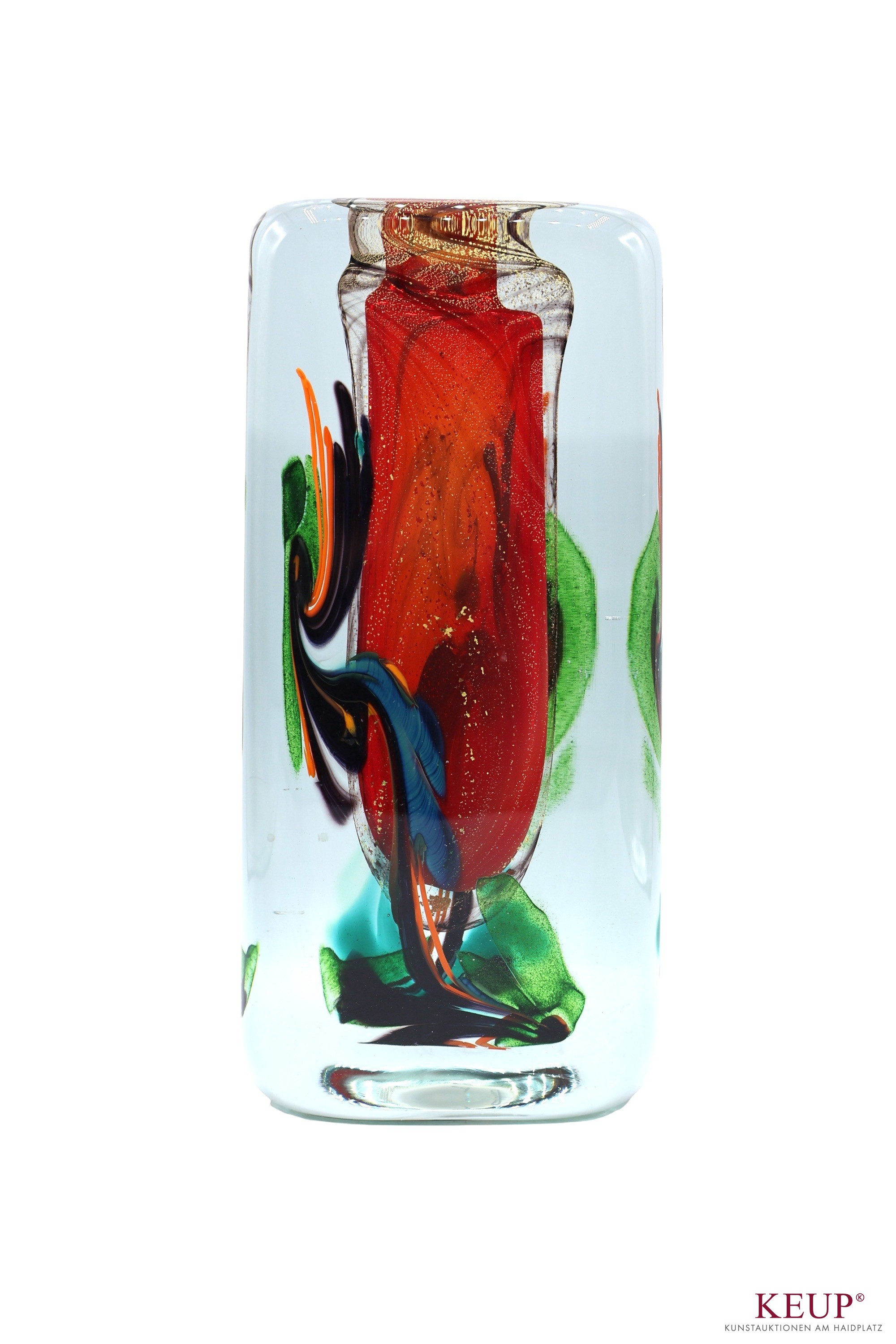 Glasobjekt - Robert PIERINI (Frankreich 1950 / Côte d`Azur ) Vase rot, signiert und datiert 1998, schwere Ausführung, Höhe ca. 21 cm, Provenienz: Private Kunstsammlung Oberpfalz