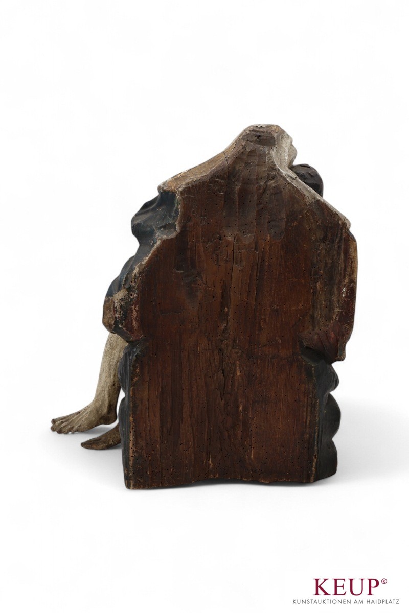 Figur - wohl alpenländisch 18.Jahrhundert Vesperbild bzw. Pieta, Maria den Korpus ihres Sohnes auf dem Schoß haltend, Holz geschnitzt und gefasst, rückseitig abgeflacht, Altersspuren, Höhe 50 cm, ca. 7,8 kg, Provenienz: Privatsammlung Regensburg