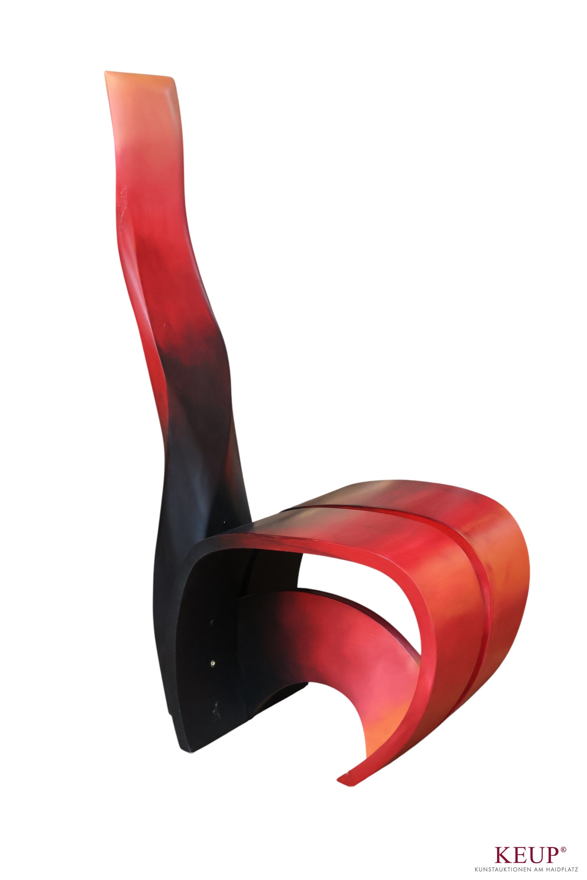Designmöbel - Vlastimil Teska (1945 Pisek) Stuhl, Holz, Maße 108x37x60 cm, Altersspuren, Provenienz: Private Kunstsammlung Oberpfalz, vgl. Lit.: Studium an der Hochschule für angewandte Kunst in Prag; seit 1989 freischaffend mit seinem Sohn Marek Teska (Studium Architektur in Prag); Atelier in Prag und Pisek; Beide sind Dozenten an der Hochschule für angewandte Kunst in Prag; vgl. Ausstellung Handwerkmuseum Deggendorf