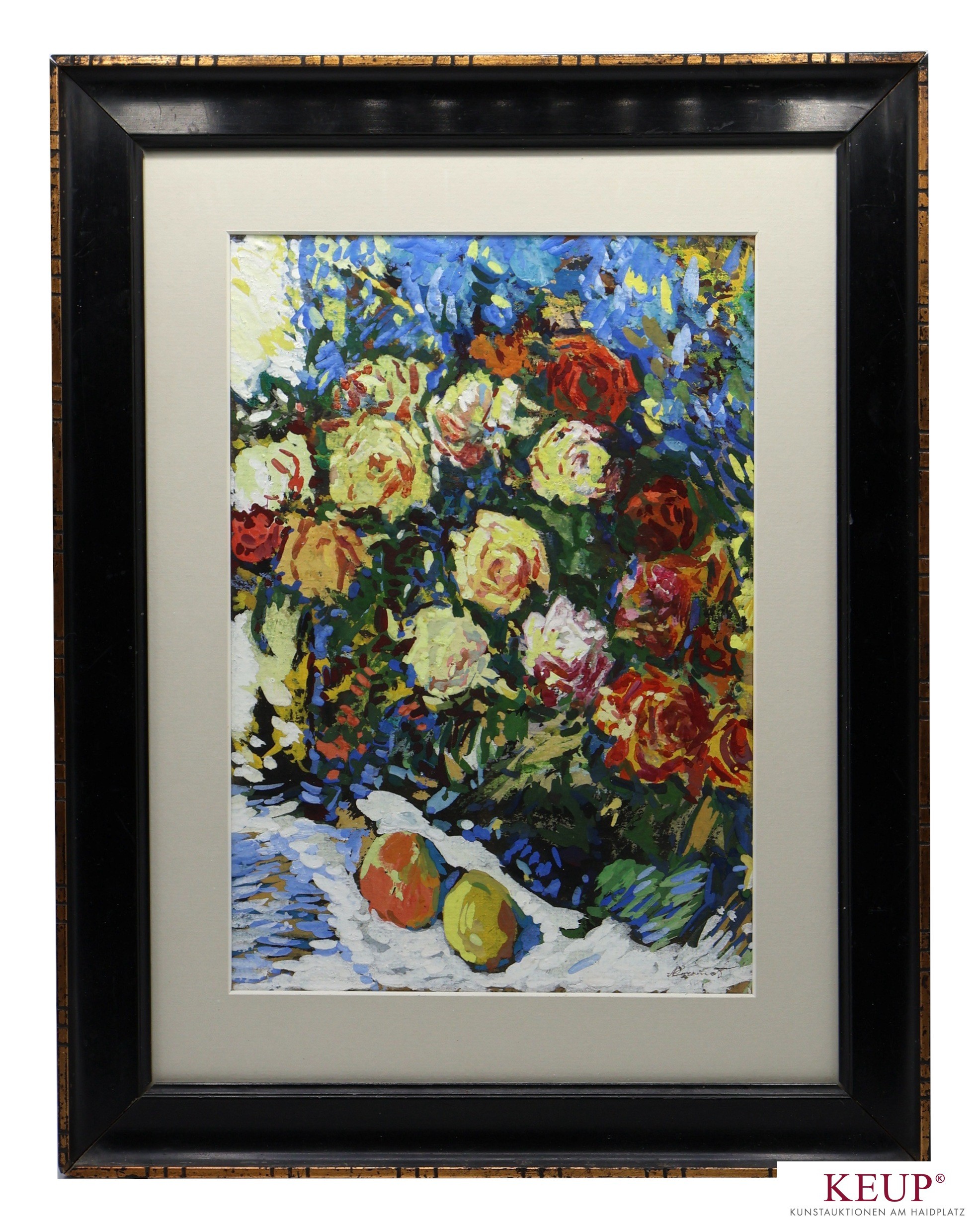 Mischtechnik - Alexander Kotchetow (1966 Kiew Ukraine - 2019 München) ''Stillleben'', r.u. signiert, Mischtechnik auf Papier, Maße Darstellung ca. 30x21 cm, Rahmen, Gesamtmaße ca. 45x35 cm, Provenienz: Privatbesitz Regensburg, vgl. Lit.: 1985 Abschlussdiplom der Kunstschule in Kiew, 1987 Studium an der Akademie der Bildenden Künste in Kiew, 1992 Stipendium an der Akademie der Bildenden Künste in München, 1993 Abschlussdiplom der Akademie der Bildenden Künste in Kiew, 1997 lebte als Künstler Resident mit seiner Frau in München