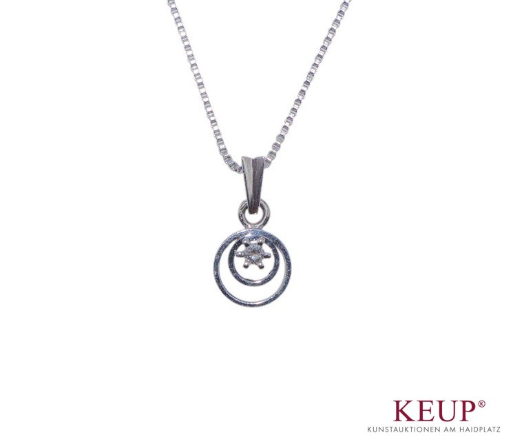 Anhänger an Kette Weißgold gest. 585, Anhänger mit kl. Brillanten ausgefasst, Höhe ca. 1,5 cm, Länge Kette ca. 45 cm, Gesamtgewicht ca. 4,5 Gramm, Provenienz: Privatbesitz Regensburg