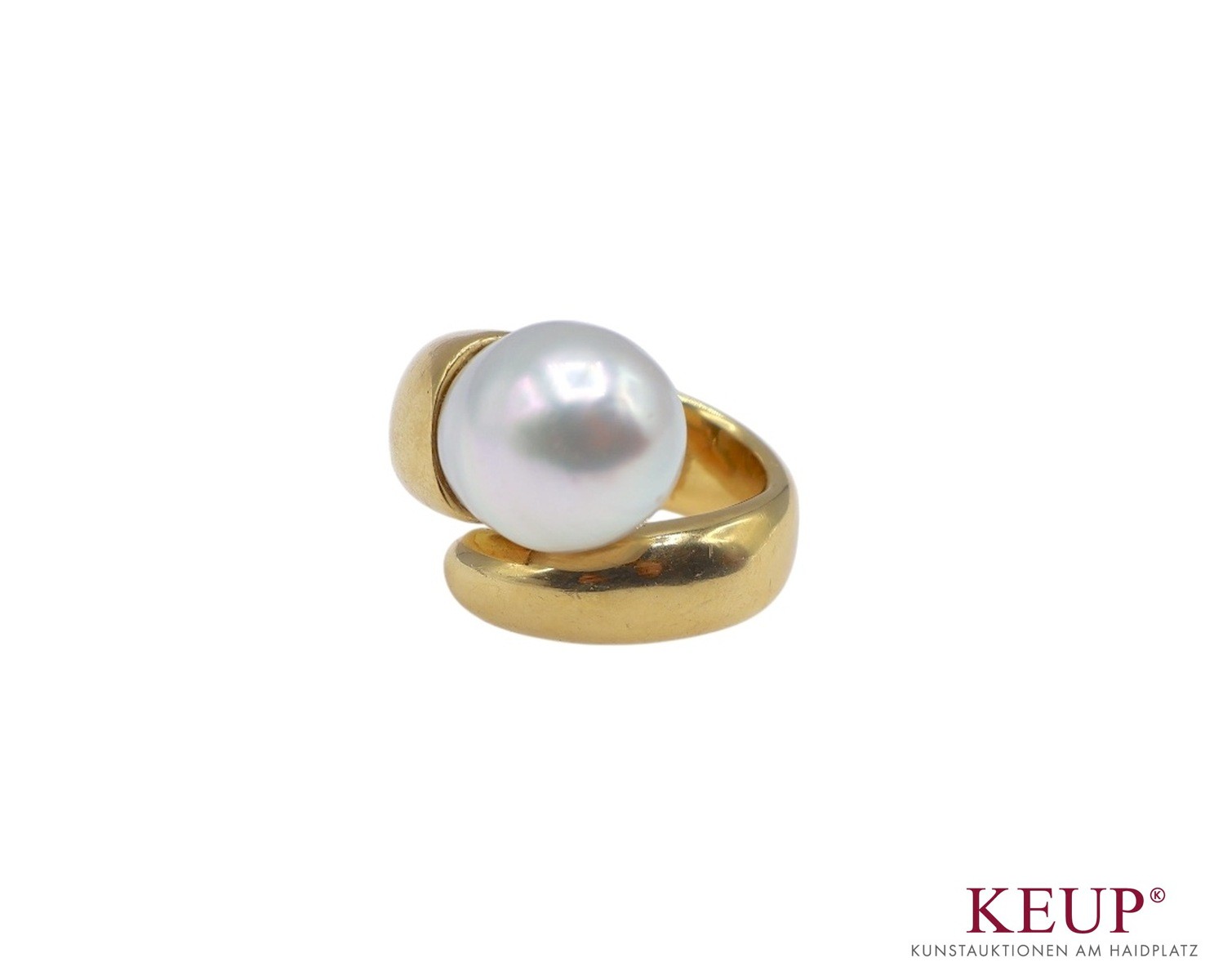 Goldener Damenring Gelbgoldfassung in 750, Schlangenform mit Südseeperle (leicht Naturgrau 15x13 mm), Ringgröße 53, ca. 45 Gramm