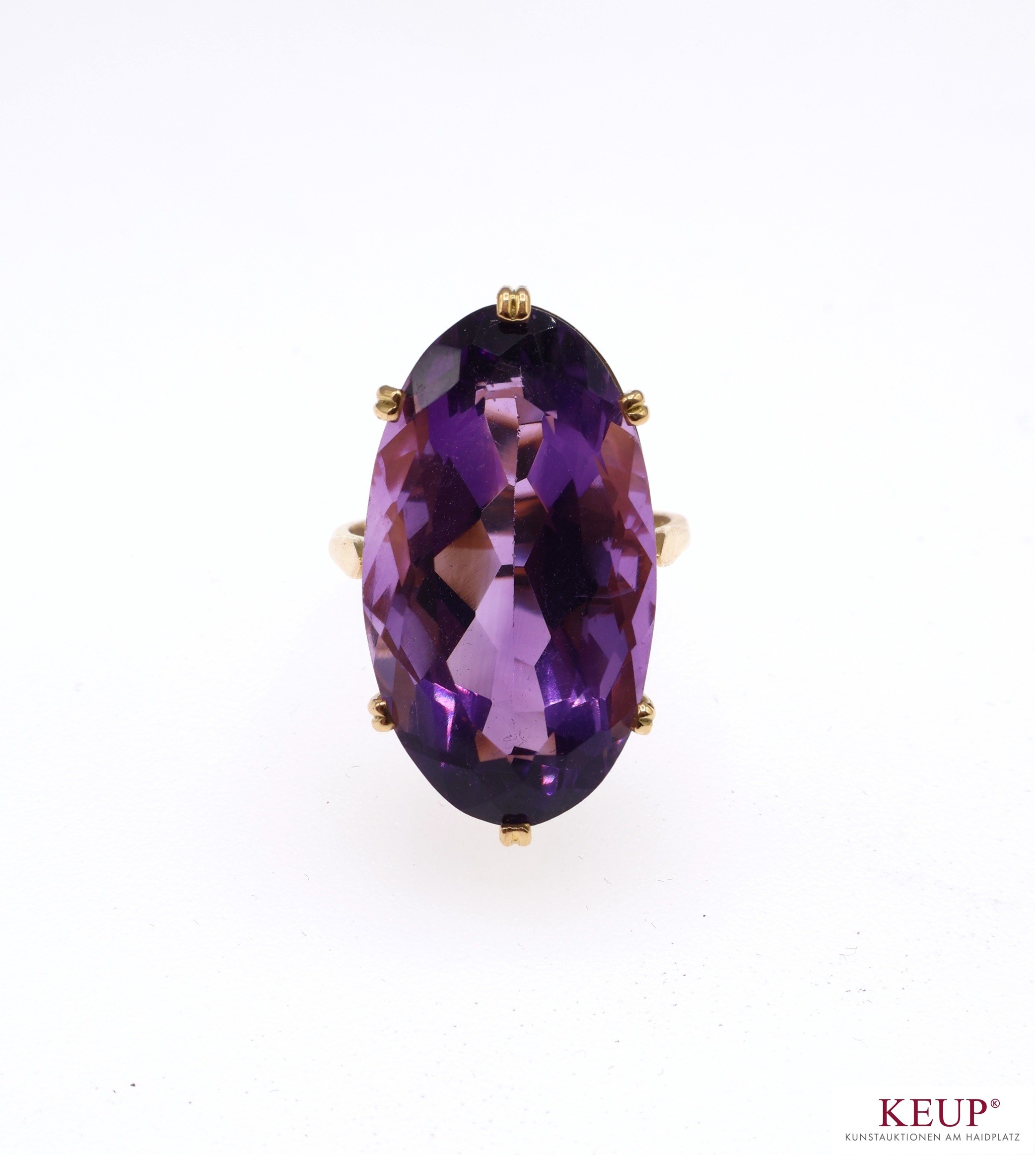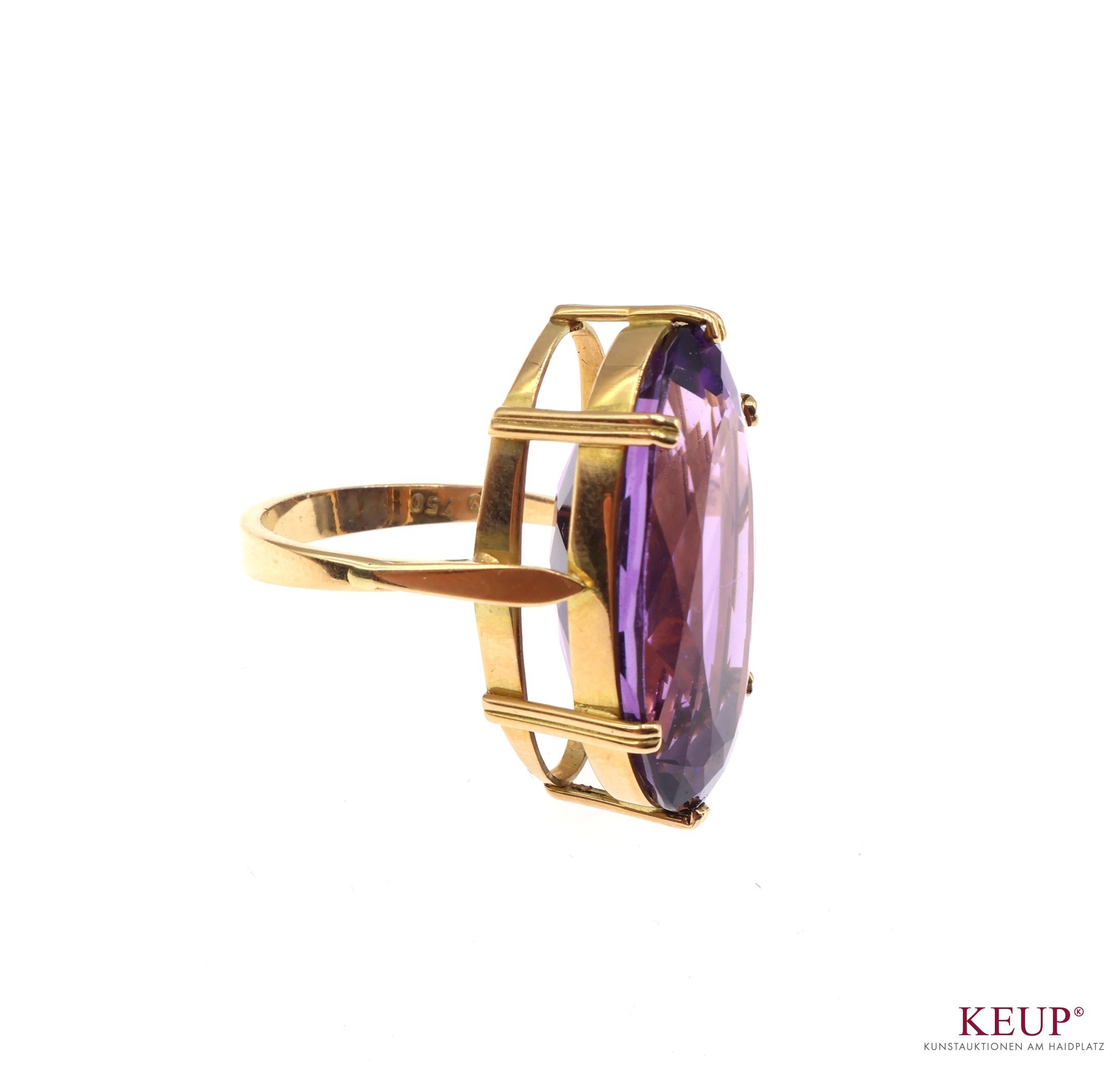 Goldener Damenring Gelbgold gest. 750, ausgefasst mit einem Amethysten, Ringgröße 53, ca. 9 Gramm, Provenienz: Privatbesitz Landkreis Regensburg