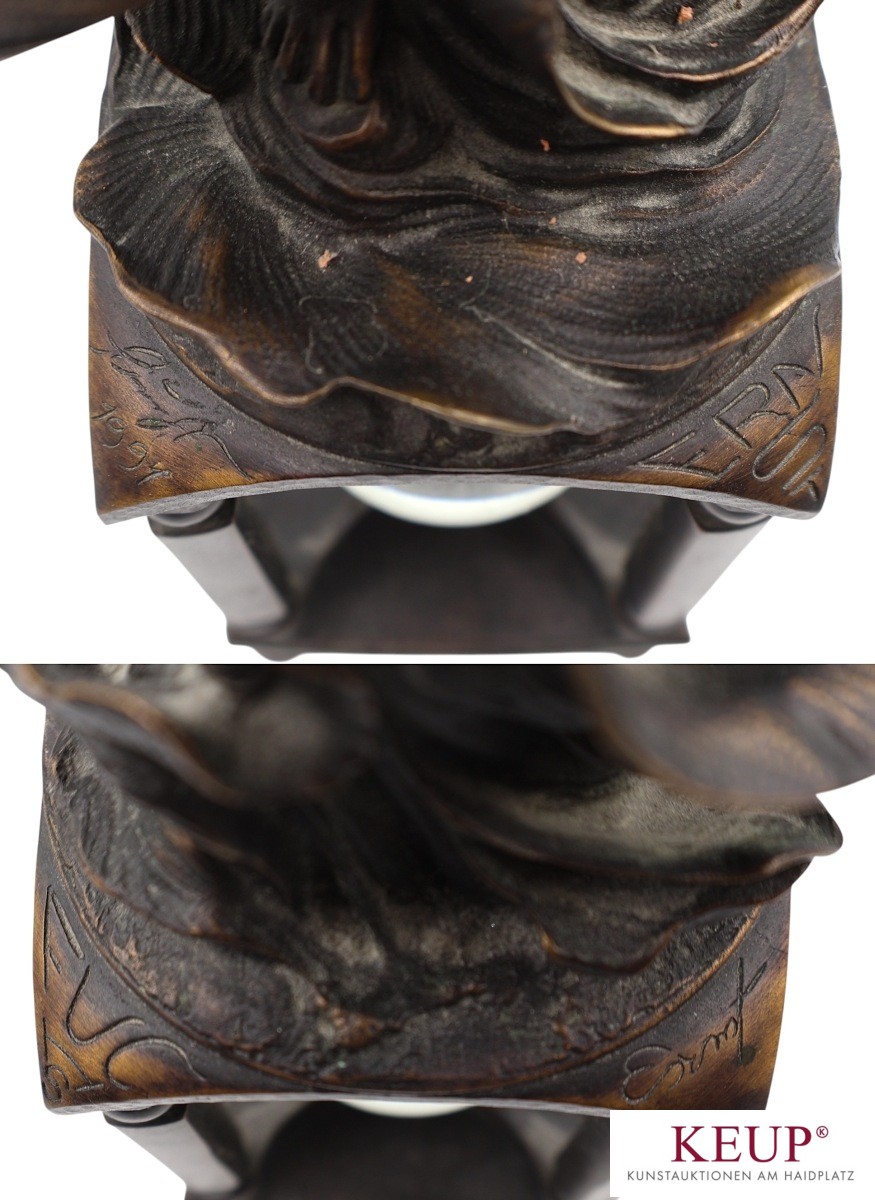 Skulptur - Prof. Ernst Fuchs (Wien 1930 - 2015) ''Maria Prophetissa'', Bronze/Glas, signiert, Nr.13/350, gemarkt Strassacker Kunstguss Süssen 94, Gesamtgewicht ca. 5,10 kg, Höhe ca. 45 cm, Provenienz: Privatsammlung Regensburg, vgl Lit.:Österreichischer Maler, Architekt und Musiker; Mitbegründer der Wiener Schule des Phantastischen Realismus, Studium an der Akademie der bildenden Künste in Wien unter Andersen und Gütersloh, ,
