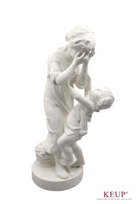Große Figur - Marke Scheibe Alsbach Thüringen 20.Jahrhundert, ''Weinende Mutter mit Kind'', Biskuitporzellan weiß, Höhe ca. 42 cm, Provenienz: Privatbesitz Oberpfalz