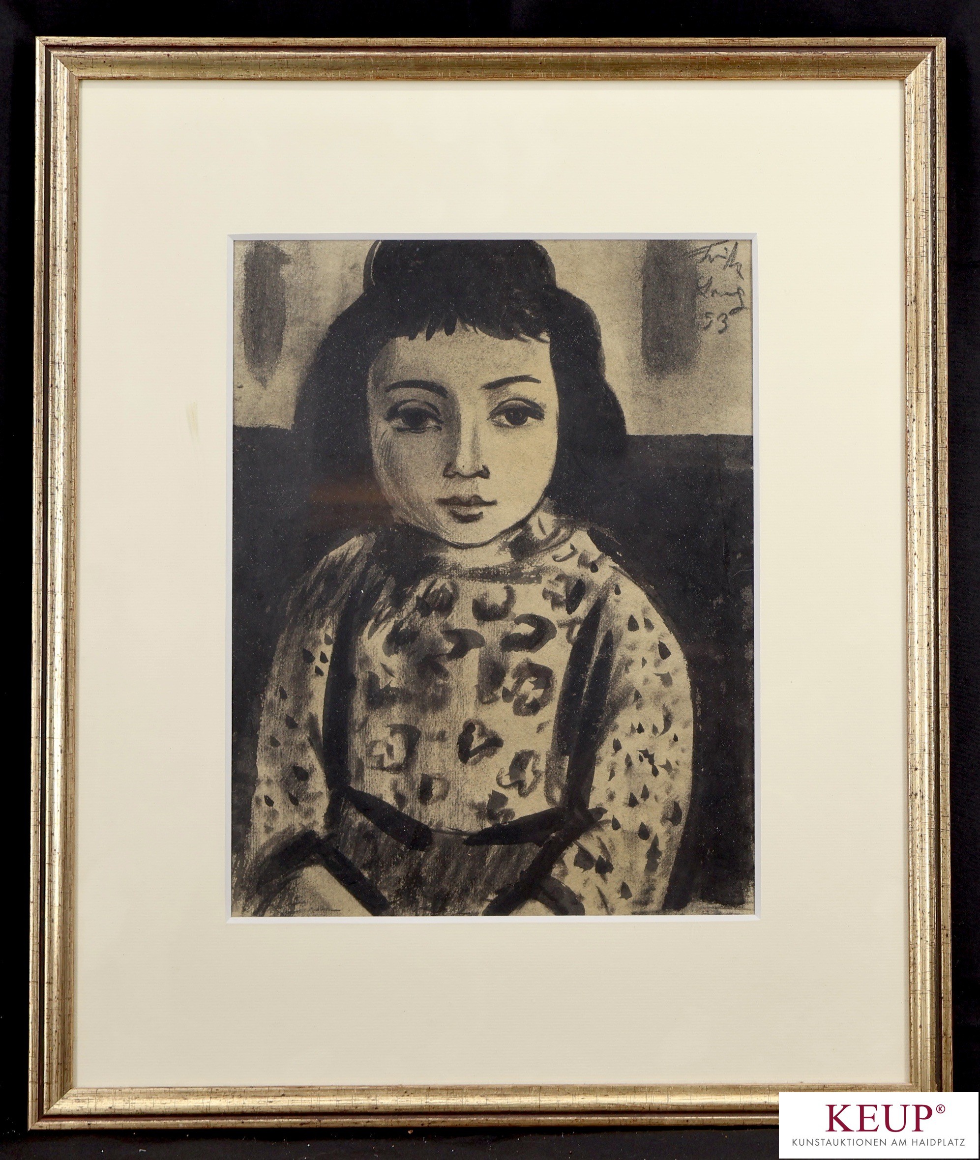 Aquarell - Fritz LANG (1877 Stuttgart 1961) ''Mädchenbildnis'', signiert und datiert 1953, lasierende Farben auf Papier, Maße Darstellung ca. 31x24 cm, Passepartout, Rahmen, Gesamtmaße ca. 49x41 cm, Provenienz: Nürnberg, vgl.Lit.: Kunstakademie Stuttgart bei Prof. Grünenwald und Kappis, in Karlsruhe Schüler von Viktor Weißhaupt;