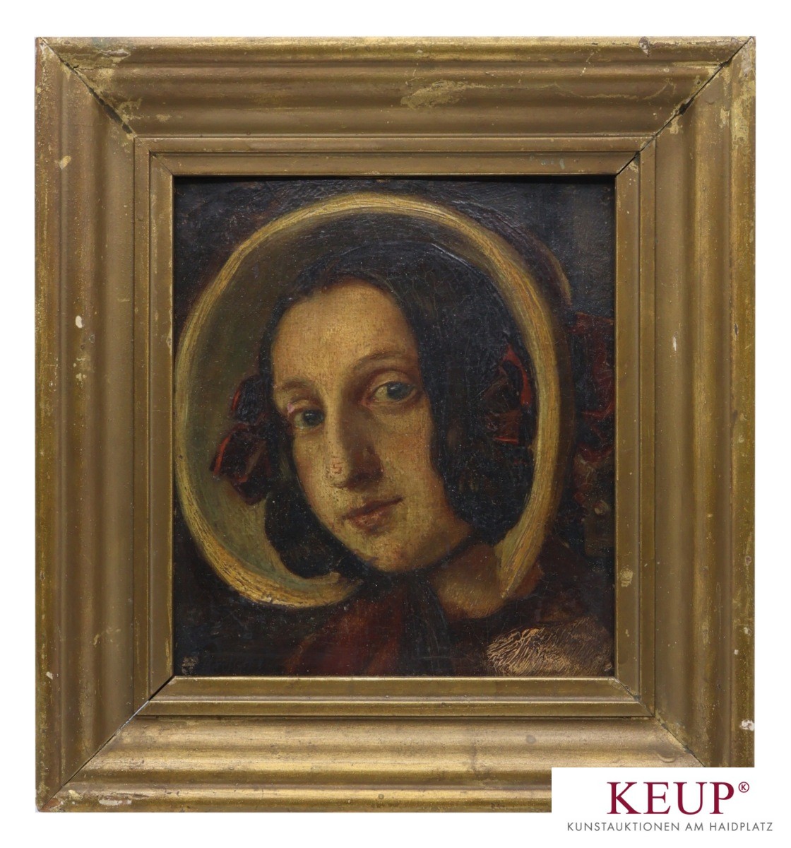 Gemälde - wohl deutsch 19.Jahrhundert ''Damenbildnis'', unsigniert, Öl auf Malerpape, Maße Darstellung ca. 16x14 cm, Rahmen, Provenienz: Privatbesitz Regensburg
