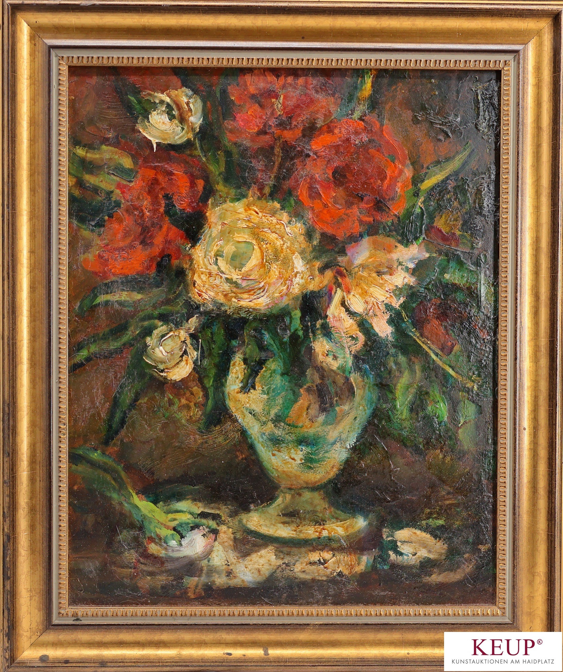 Gemälde - anonymer Künstler (XX.Jahrhundert) ''Blumenstillleben'', Öl auf Hartfaser, Maße Darstellung ca. 50x40 cm, Goldrahmen, Gesamtmaße ca. 60x50 cm, Provenienz: Privatbesitz Oberpfalz