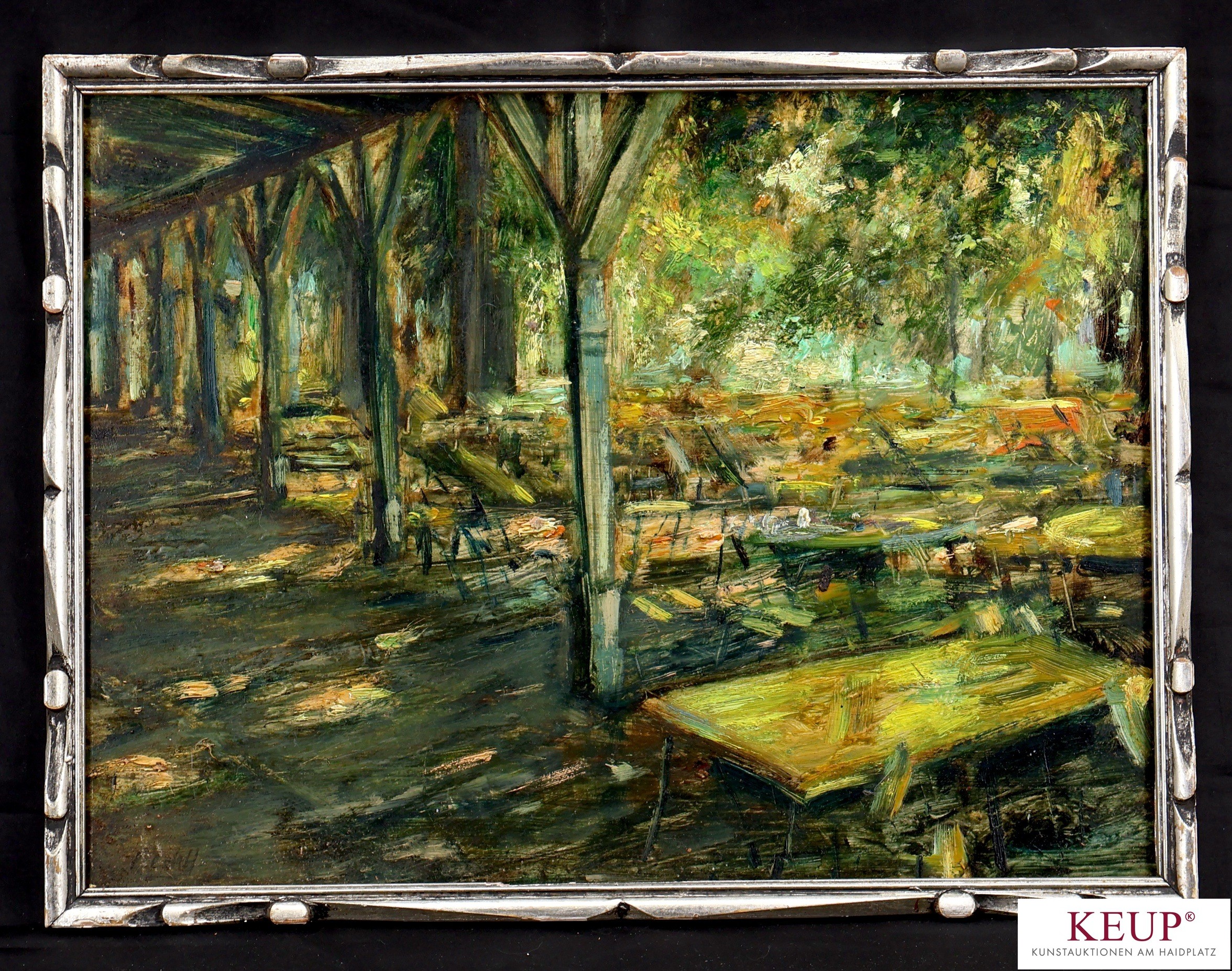 Gemälde - Gerhard Prechtl (1951 - 2024 Regensburg) ''Biergarten Spital in Regensburg'', l.u. signiert, Öl auf Hartfaser, Maße Darstellung 30x40 cm, Rahmen, Provenienz: Privatbesitz Regensburg, vgl. Lit. Eine Stadt im Spiegel der Malerei von W. Amann: Maler, Zeichner und Graphiker; Mitglied: BBK Ndb./Opf., Regensburg; Regensburger Gruppe Kunst; Künstlergilde Esslingen; Münchner Künstlergenossenschaft; Verein für Christliche Kunst - Werke (öffentlich): Bayerische Staatsgemäldesammlungen; Universität Regensburg; Landbauämter; Regensburg; Cham; Amberg; Kinderklinik; Wandgemälde, Bleiglasfenster