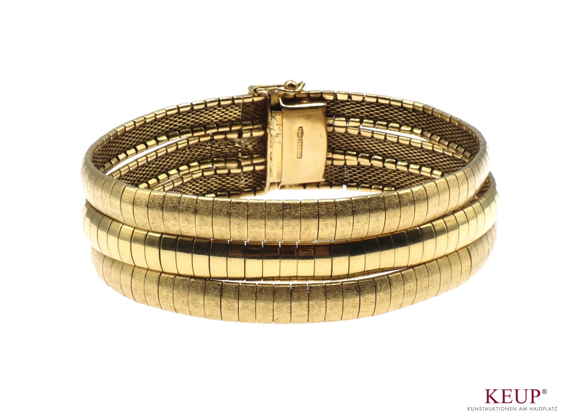 Goldenes Armband Gelbgold gest. 750, 3-reihig, Kastenverschluss mit Sicherheitsachter, Länge ca. 19 cm, ca. 47 Gr., Provenienz: Privatbesitz Chiemgau