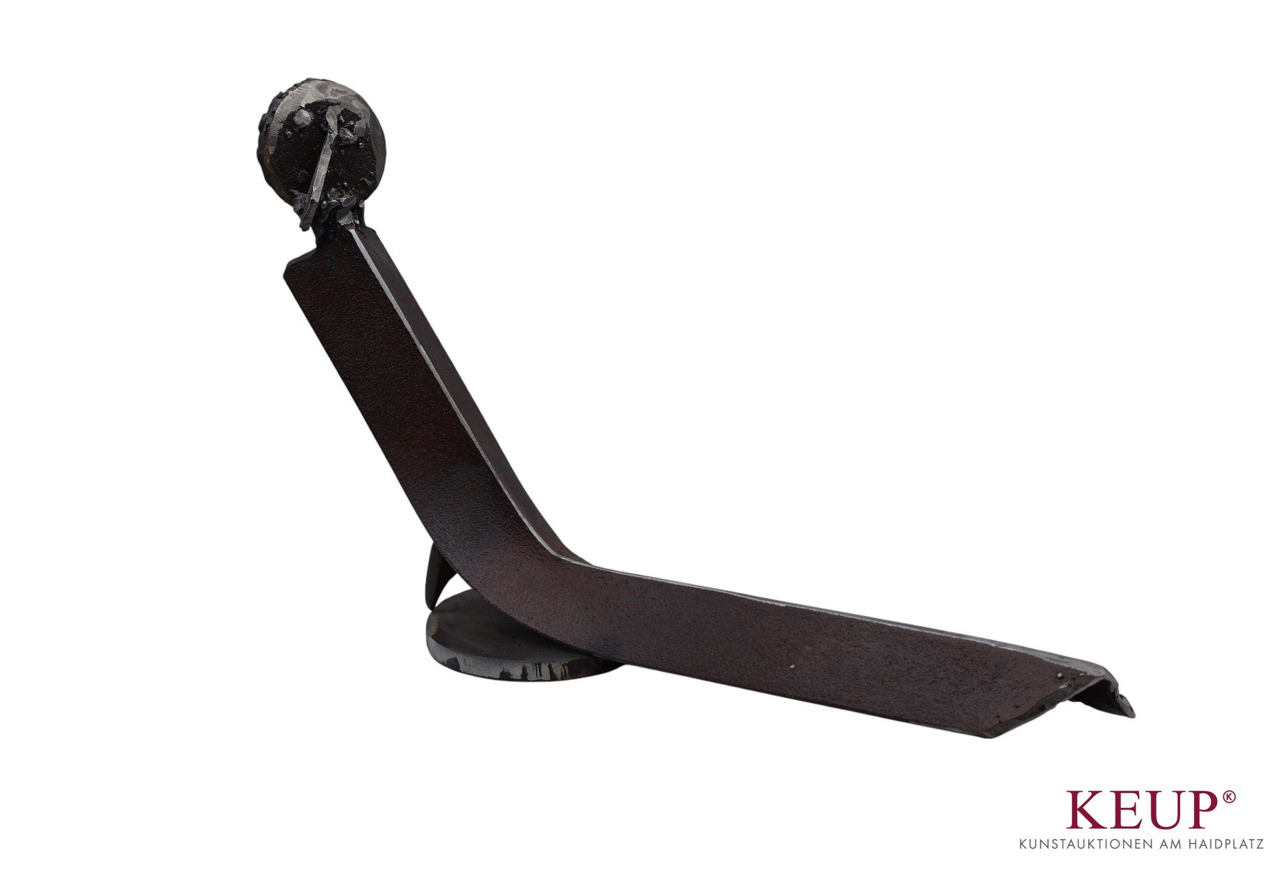 Figur - Hans Jürgen Bröckl (1956 Flossenbürg in der Oberpfalz) ''Ohne Titel'', Metall, Maße ca. 26x39 cm, Provenienz: Private Kunstsammlung Oberpfalz, vgl. Lit.www.broeckl-art.com: 1979-1984 Studium der Malerei und Graphik an der Kunsthochschule Kassel bei den Prof. Kurt Hauck, Manfred Bluth und Nickl; seit 1984 freischaffender Künstler in seiner Heimatgemeinde Flossenbürg, Gruppenausstellungen: 1981 Kunstverein Kassel,1983''Junger Westen'' Recklinghausen 1984 Haus der Kunst München,1987Aktionsraum Sandershäuser-Straße Kassel,1990 Diözesanmuseum Regensburg 1992 Runtingerhaus Regensburg,1993 Diözesanmuseum Regensburg, Einzelausstellungen: 1983 Galerie Hammer Weiden 1985 Kunstraum Hafens-Straße Kassel, 1987 Galerie Ulrich Berr Weiden,1988 Aktionsraum Sandershäuser-Straße Kassel 1991/92/93 Galerie Albrecht Regensburg,1997 Raiffeisenbank Flossenbürg, 2000 Krankenhaus Burglengenfeld, 2002 Kunstverein Weiden, 2008 Atelier & Galerie Dinnes St. Johann - Pfatter, 2019 fairKULTURcafé e.V. Neumarkt/Opf..