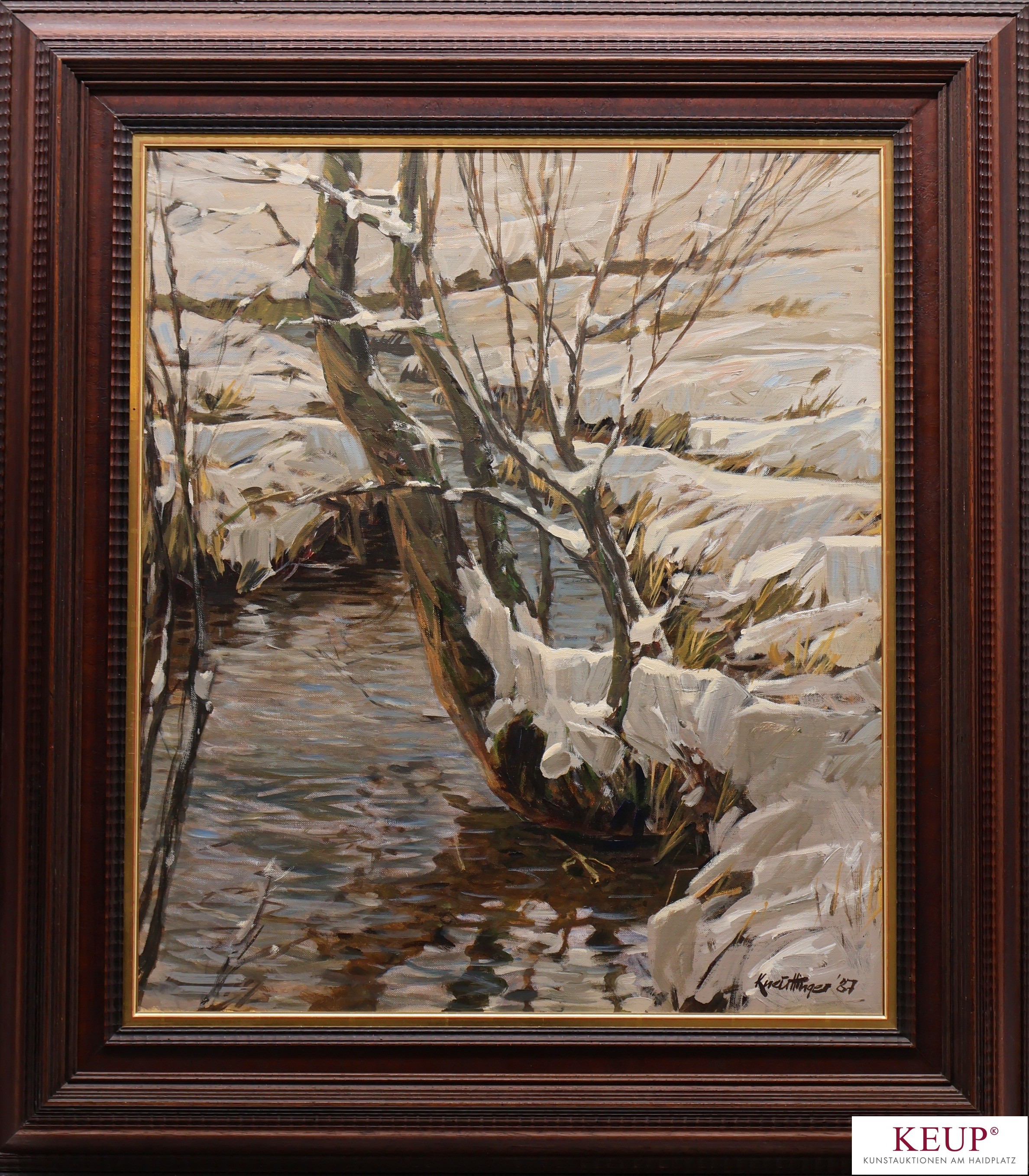 Gemälde - Josef KNEUTTINGER(1927 München - 2015 Neubiberg) ''Winterlandschaft'', r.u. signiert und datiert (19)87, Öl auf Leinwand, Maße Darstellung ca. 70x60 cm, Rahmen, Gesamtmaße ca. 95x85 cm, Provenienz: Privatbesitz Weiden