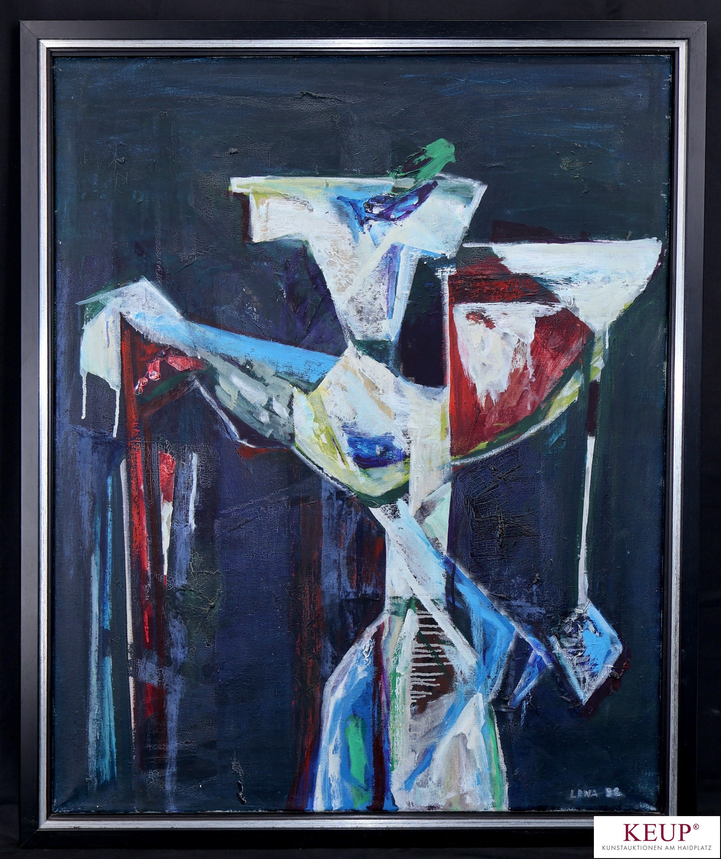 Gemälde - Lena Bosch (1945 Freudenholz) ''Ohne Titel'', signiert, datiert (19)92, Öl auf Leinwand, Maße Darstellung ca. 81x66 cm, Rahmen, Provenienz: Private Kunstsammlung Oberpfalz, vgl.Lit.: Lena Bosch ist aufgewachsen in Regensburg. Malerin Autodidakt, zahlreiche Studienreisen, u.a. Indien, USA, seit 1999 Atelier in Salzburg, Stipendium, Virginia Center for Creative Arts, USA, Stipendium, Trondheim, Norwegen,Budapest, Ungarn, Manila ,Philippinen, Arbeitsgebiete Malerei, Collage, Radierung, Fotografie, Video Ausstellungen zahlreiche Ausstellungen im In- und Ausland: USA, Philippinen, Österreich etc. 2005 Sultanat Brunei, Borneo, Beteiligung an Internationalen Kunstmessen: ART- Basel, Köln, Wien, Frankfurt, Karlsruhe vertreten durch Galerie Lang, Wien, Galerie Knyrim, Regensburg, Öffentliche Ankäufe / Kunst im öffentlichen Raum, Stadt Regensburg, Stadt Amberg, Stadt Salzburg, Diözesanmuseum Regensburg.,