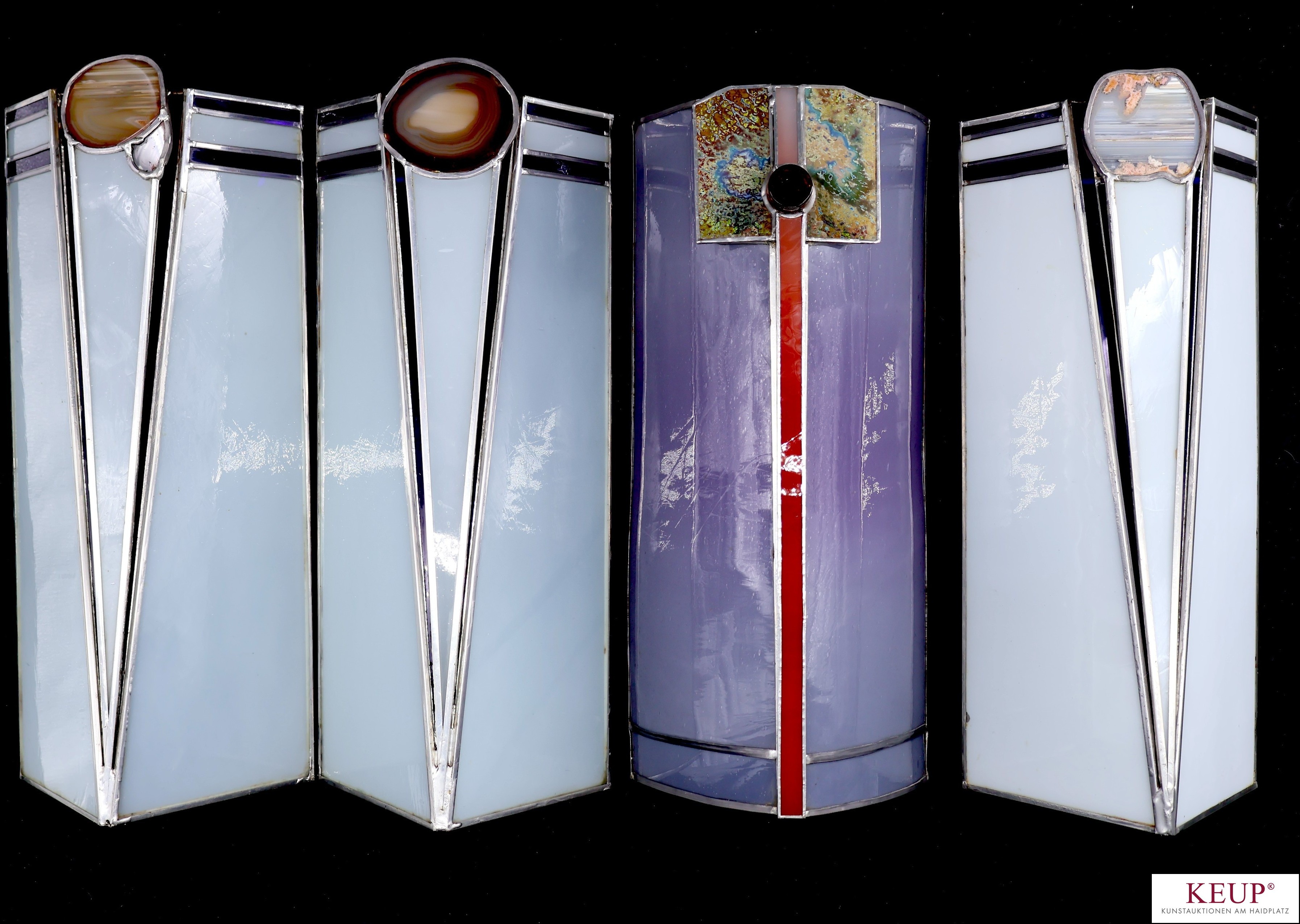 Satz Lichtobjekte - XX./XXI.Jahrhundert im Art Deco Stil, buntes Glas, Höhe ca. 48 cm, Bleifassung, verschiedenes Design, 4 Stück, Provenienz: Private Kunstsammlung Oberpfalz