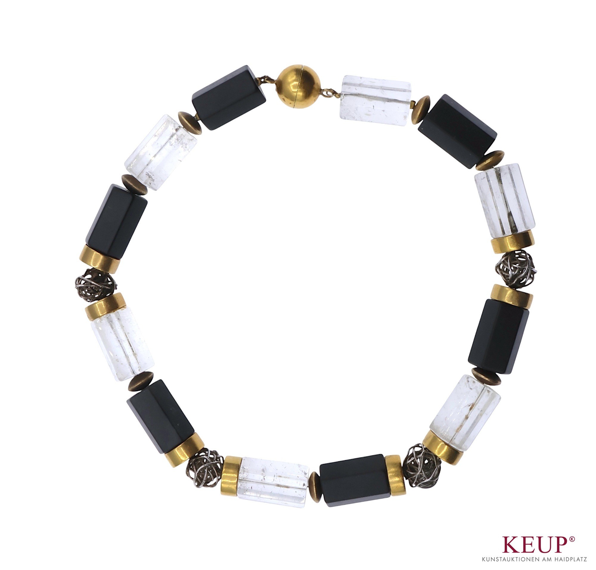 Halskette - Marke EMS (XX.Jahrhundert) Onyx und Bergkristall facettiert, Zwischenkugeln und Magnetverschluß Silber 925 vergoldet, Länge ca. 48 cm, Provenienz: Privatbesitz Regensburg