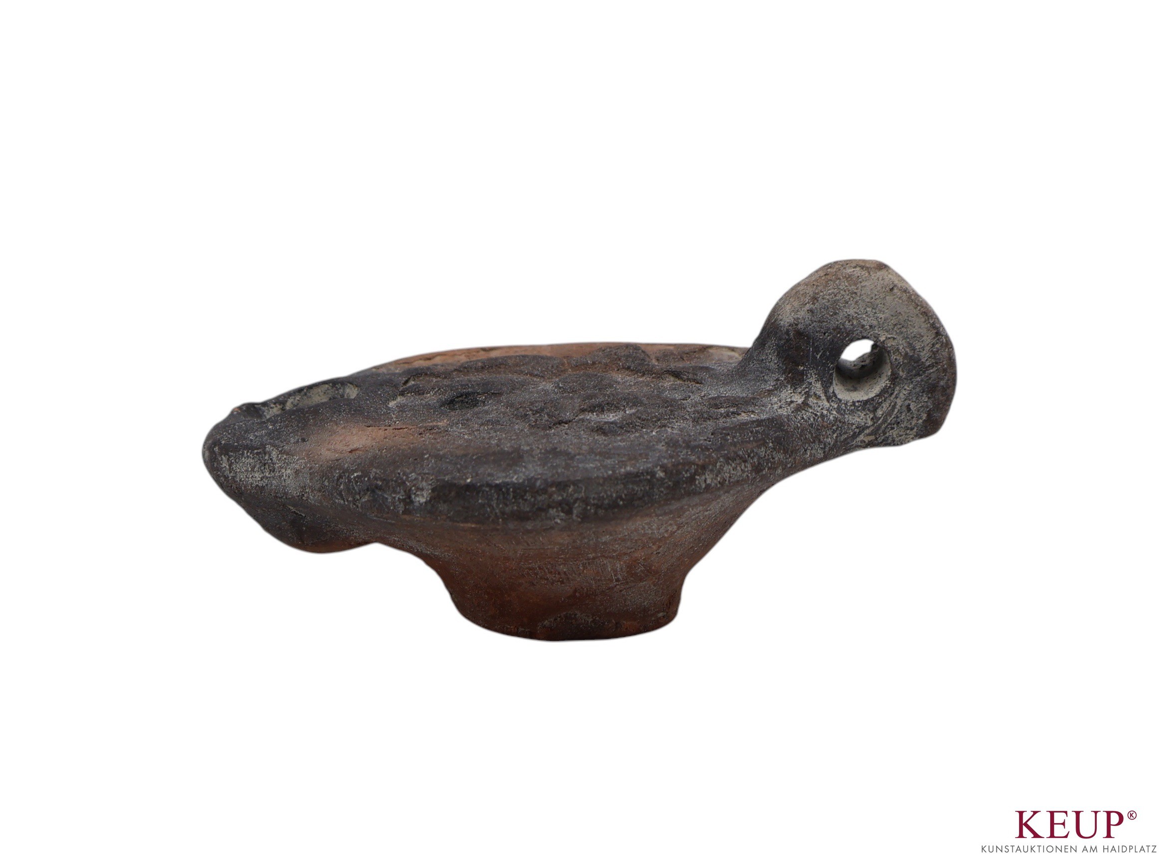 Antike Öllampe - wohl Asien Keramik, Figurenstaffage, Altersspuren, Länge ca. 10 cm, Provenienz: Privatbesitz Oberbayern