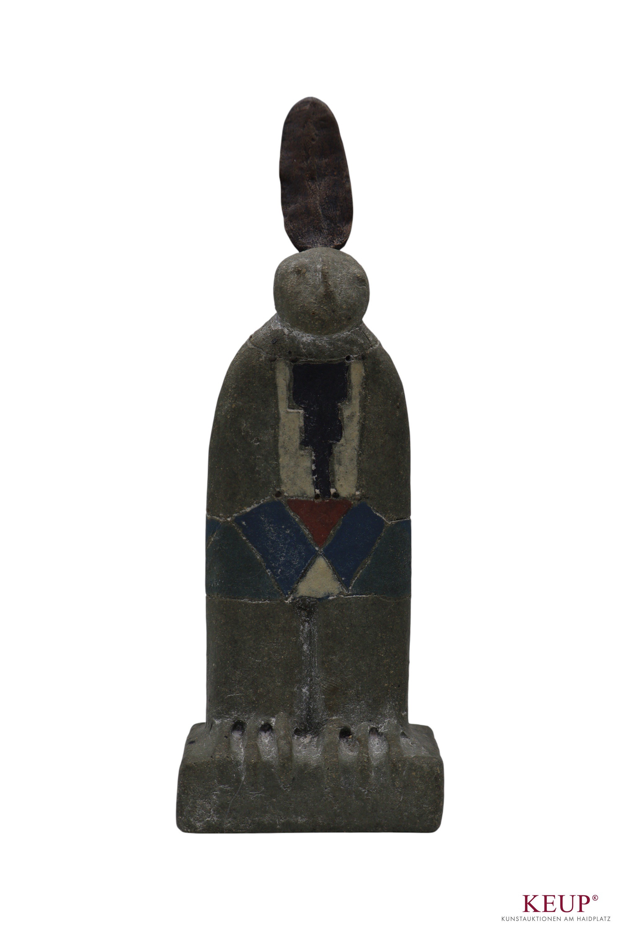 Paar Figuren - Peter Mayer (1938 Schwandorf / Bayern 2009) ''Native Americans'', monogrammiert und datiert (19)97, Terrakotta und Bronze, Höhe ca. 13 und 17,5 cm, 2 Stück, Provenienz: Private Oberpfälzer Kunstsammlung vgl. Literatur: Staatl. Fachschule für Keramik in Landshut, 1958-64 Akademie der Bildenden Künste München, seit 1964 freischaffender Bildhauer in Schwandorf 1974 Ostbayerischer Kulturpreis OBAG 1991, 94, 98 Stipendium und Aufenthalt im V.C.C.A, USA Ausstellungen: 1975 Miami Beach, I.C.S. Conv. 1976 Galerie Bürdecke, Zürich 1977 Kunstmesse Köln, Kunsthaus Lübeck 1978 Galerie Sphinx, Amsterdam 1984 Tassilo Galerie, Nürnberg 1984 Galerie im DEZ, Regensburg 1985 Galerie Lange Straße, Baden-Baden 1988 Oberpfälzer Künstlerhaus, Schwandorf 1992 Musée des Beaux-Arts, Libourne 1997 St. Anna Kapelle, Passau 1998 Kleine Galerie, Regensburg 1999 Kapuziner Stadl, Deggendorf Öffentliche Ankäufe / Kunst im öffentlichen Raum: Museum der Stadt Regensburg, Bay. Staatsgemäldesammlung München Universität Regensburg, Bezirk Oberpfalz, viele Arbeiten im öffentlichen Raum