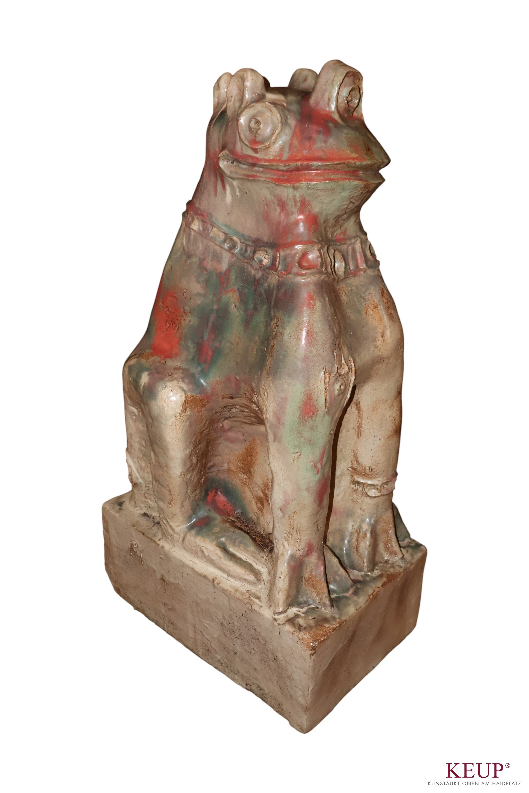Figur - Peter Mayer (1938 Schwandorf / Bayern 2009) ''Fabelwesen'', Terrakotta, Höhe ca.84 cm, Altersspuren, Provenienz: Private Oberpfälzer Kunstsammlung vgl. Literatur: Staatl. Fachschule für Keramik in Landshut, 1958-64 Akademie der Bildenden Künste München, seit 1964 freischaffender Bildhauer in Schwandorf 1974 Ostbayerischer Kulturpreis OBAG 1991, 94, 98 Stipendium und Aufenthalt im V.C.C.A, USA Ausstellungen: 1975 Miami Beach, I.C.S. Conv. 1976 Galerie Bürdecke, Zürich 1977 Kunstmesse Köln, Kunsthaus Lübeck 1978 Galerie Sphinx, Amsterdam 1984 Tassilo Galerie, Nürnberg 1984 Galerie im DEZ, Regensburg 1985 Galerie Lange Straße, Baden-Baden 1988 Oberpfälzer Künstlerhaus, Schwandorf 1992 Musée des Beaux-Arts, Libourne 1997 St. Anna Kapelle, Passau 1998 Kleine Galerie, Regensburg 1999 Kapuziner Stadl, Deggendorf Öffentliche Ankäufe / Kunst im öffentlichen Raum: Museum der Stadt Regensburg, Bay. Staatsgemäldesammlung München Universität Regensburg, Bezirk Oberpfalz, viele Arbeiten im öffentlichen Raum