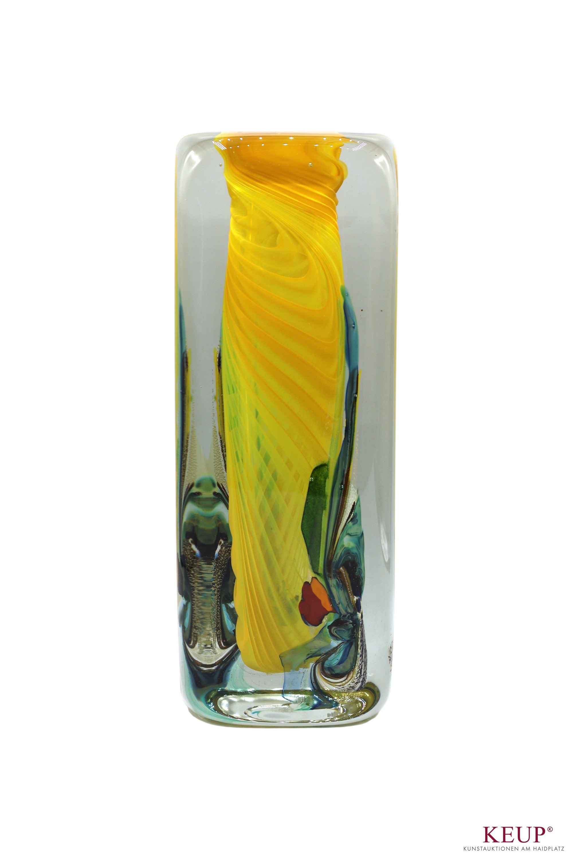 Glasobjekt - Robert PIERINI (Frankreich 1950 / Côte d`Azur ) Vase gelb, signiert und datiert 2001, schwere Ausführung, Höhe ca. 25,5 cm, Provenienz: Private Kunstsammlung Oberpfalz
