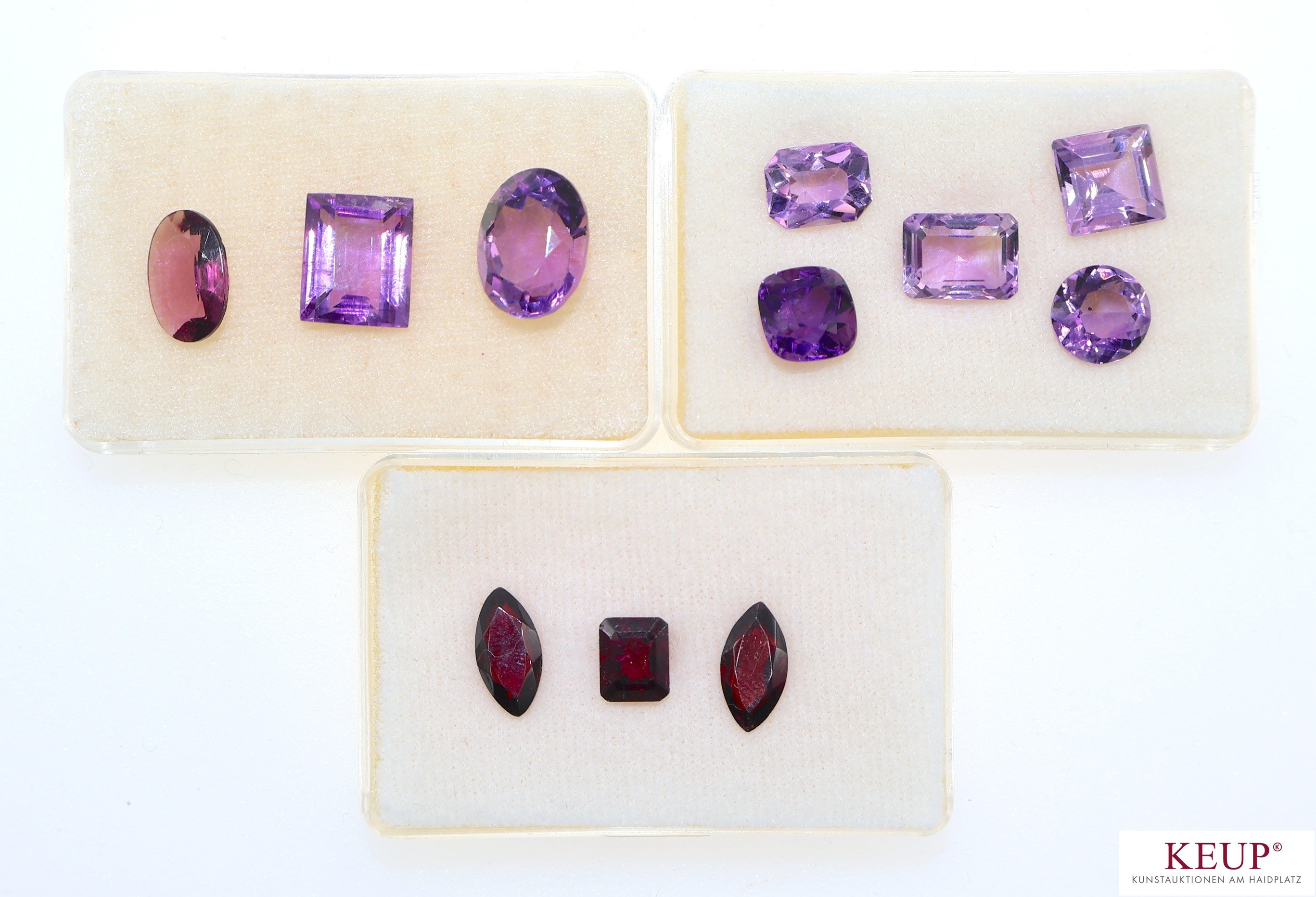 Konvolut Schmucksteine u.a. Amethysten und Granate, ca. 38 ct., 11 Stück, Provenienz: Privatbesitz Oberpfalz