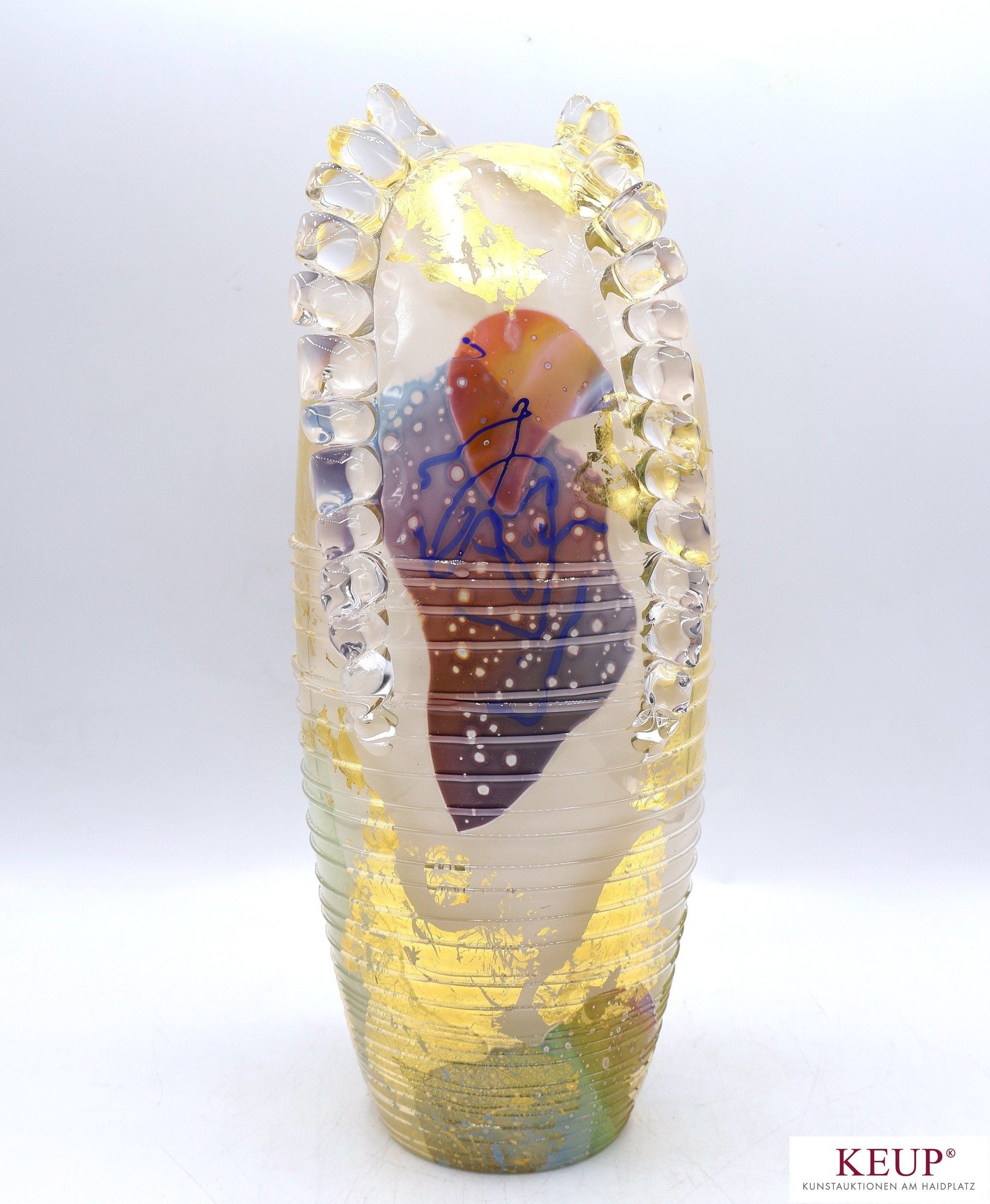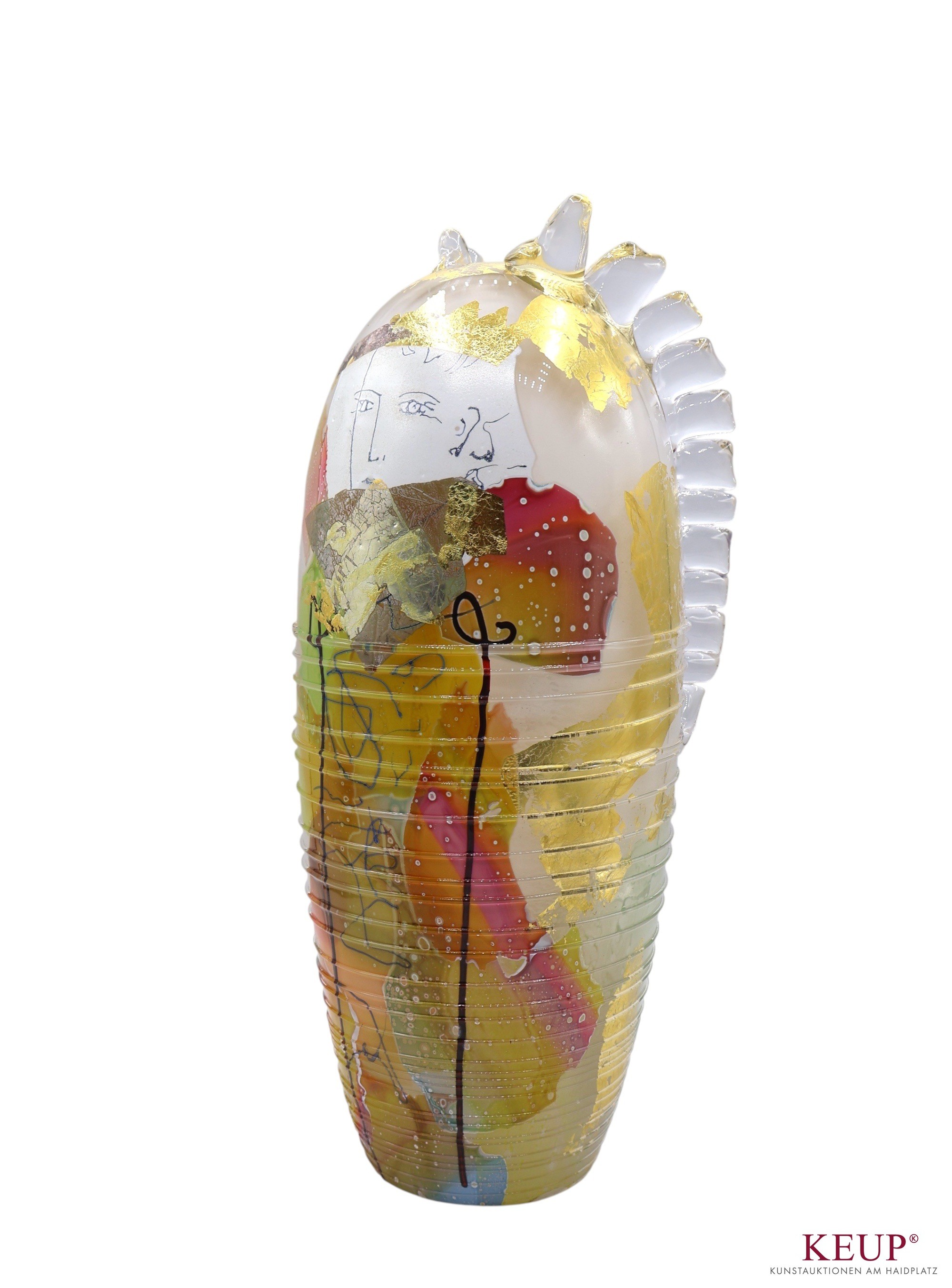 Glasobjekt - Susanne Precht (1960 Halle an der Saale) ''Kokon'', signiert, datiert 2008, Höhe ca. 30 cm, Provenienz: Regensburg, vgl. Lit.: 1978-1983 Studium an der Kunsthochschule Halle Burg Giebichenstein, Fachbereich Glasgestaltung bei Prof. Rüdiger Reinel; 1987 Mitglied des Verbandes Bildender Künstler der DDR; 2000-2002 Berufung zum Mitglied des Kunstbeirates des Freistaates Thüringen; 2008 Artist in Residence der Glashütte Eisch in Frauenau; Zahlreiche Ausstellungen und Arbeiten im öffentlichen Raum