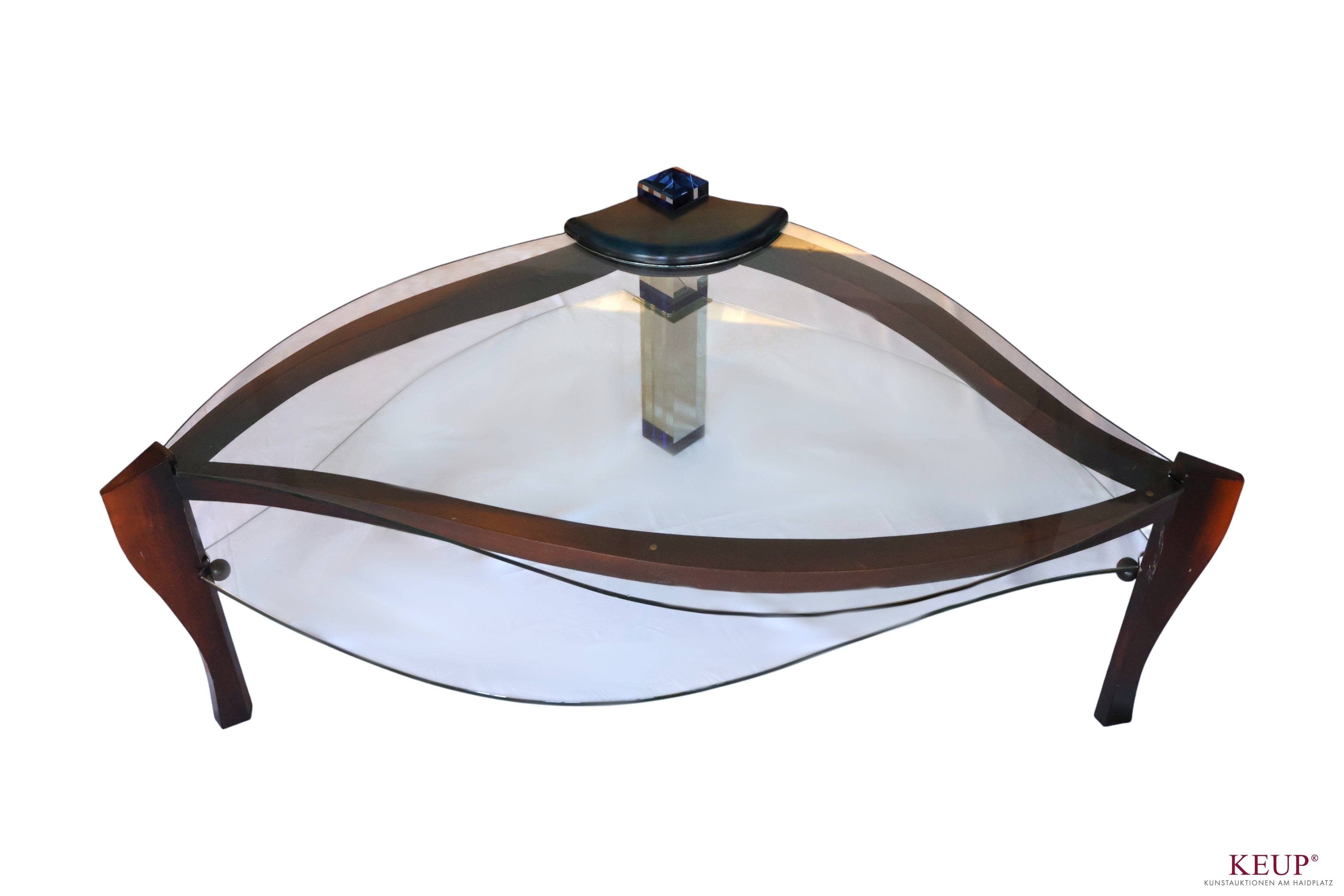 Designmöbel - Vlastimil Teska (1945 Pisek) Couchtisch, Holz/Glas, Maße 56x140x94 cm, Altersspuren, Provenienz: Private Kunstsammlung Oberpfalz, vgl. Lit.: Studium an der Hochschule für angewandte Kunst in Prag; seit 1989 freischaffend mit seinem Sohn Marek Teska (Studium Architektur in Prag); Atelier in Prag und Pisek; Beide sind Dozenten an der Hochschule für angewandte Kunst in Prag; vgl. Ausstellung Handwerkmuseum Deggendorf