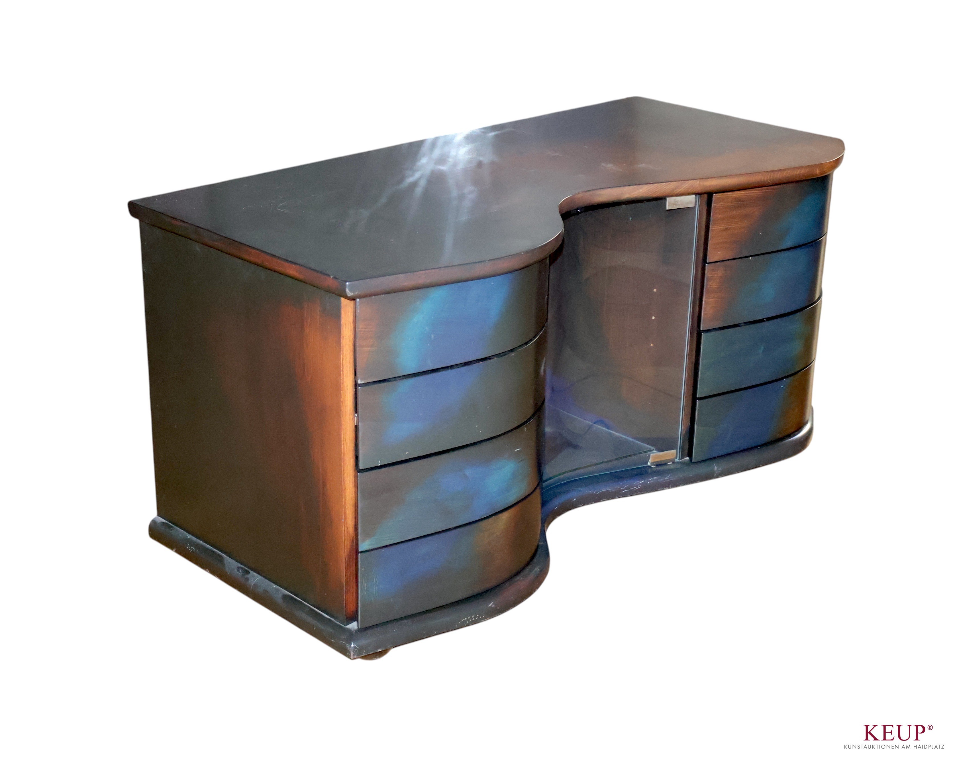 Designmöbel - Vlastimil Teska (1945 Pisek) Anrichte, Holz/Glas, Maße 61x120x54 cm, Altersspuren, Provenienz: Private Kunstsammlung Oberpfalz, vgl. Lit.: Studium an der Hochschule für angewandte Kunst in Prag; seit 1989 freischaffend mit seinem Sohn Marek Teska (Studium Architektur in Prag); Atelier in Prag und Pisek; Beide sind Dozenten an der Hochschule für angewandte Kunst in Prag; vgl. Ausstellung Handwerkmuseum Deggendorf