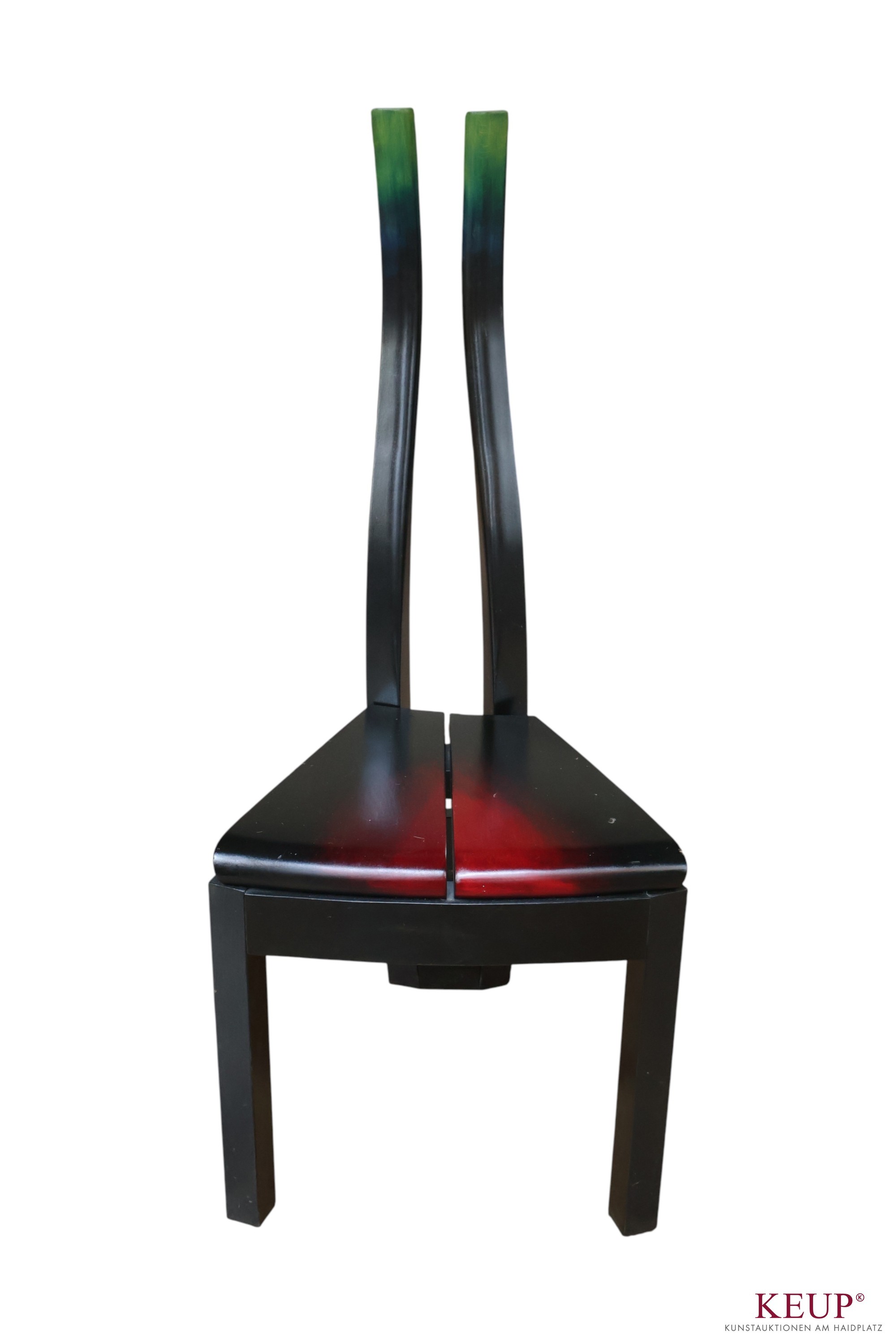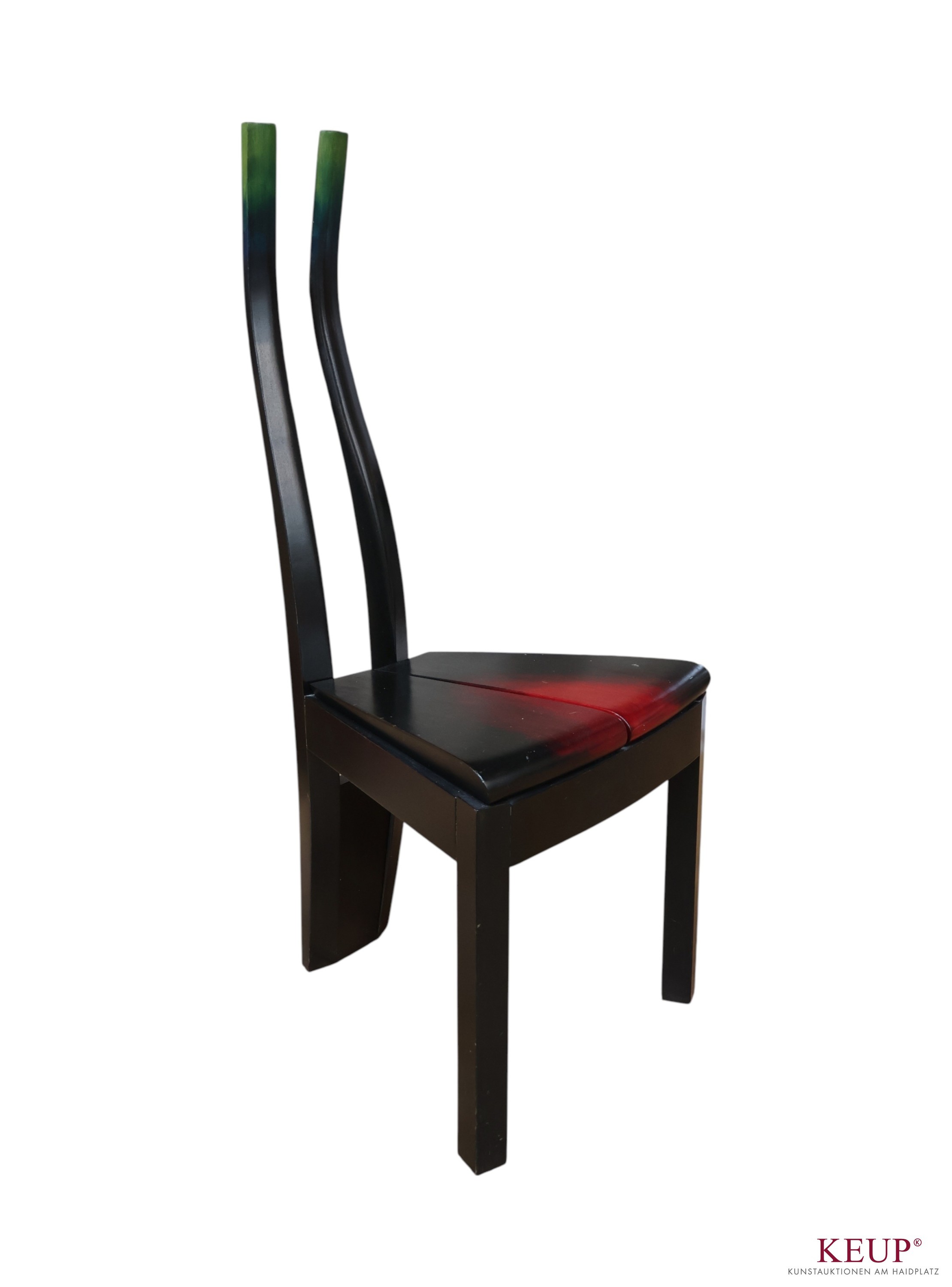 Designmöbel - Vlastimil Teska (1945 Pisek) Stuhl, Holz, Maße 108x45x42 cm, Altersspuren, Provenienz: Private Kunstsammlung Oberpfalz, vgl. Lit.: Studium an der Hochschule für angewandte Kunst in Prag; seit 1989 freischaffend mit seinem Sohn Marek Teska (Studium Architektur in Prag); Atelier in Prag und Pisek; Beide sind Dozenten an der Hochschule für angewandte Kunst in Prag; vgl. Ausstellung Handwerkmuseum Deggendorf