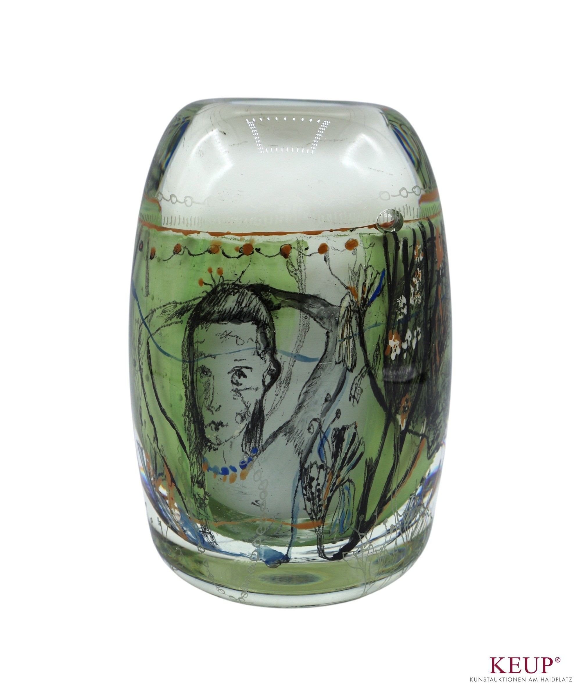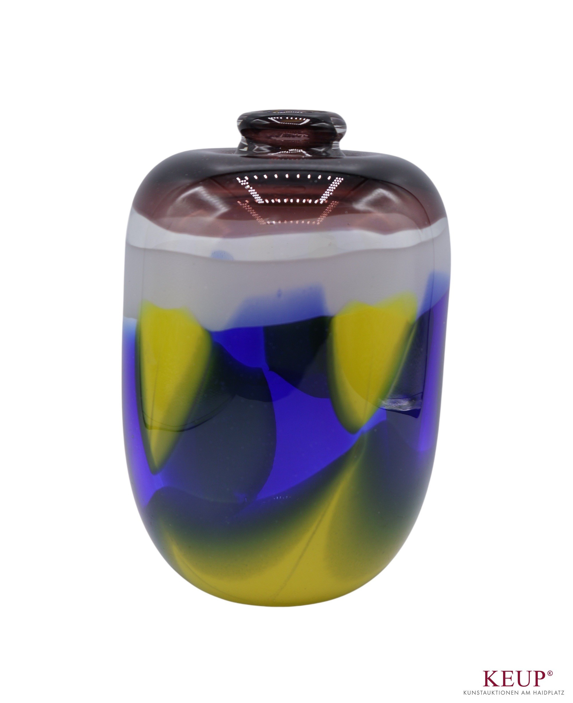 Lot Glasobjekte - XX./XXI. Jahrhundert Vasen bunt staffiert, teilweise unleserlich signiert, Höhe ca. 11,5 bis 19 cm, 3 Stück, Provenienz: Private Kunstsammlung Oberpfalz